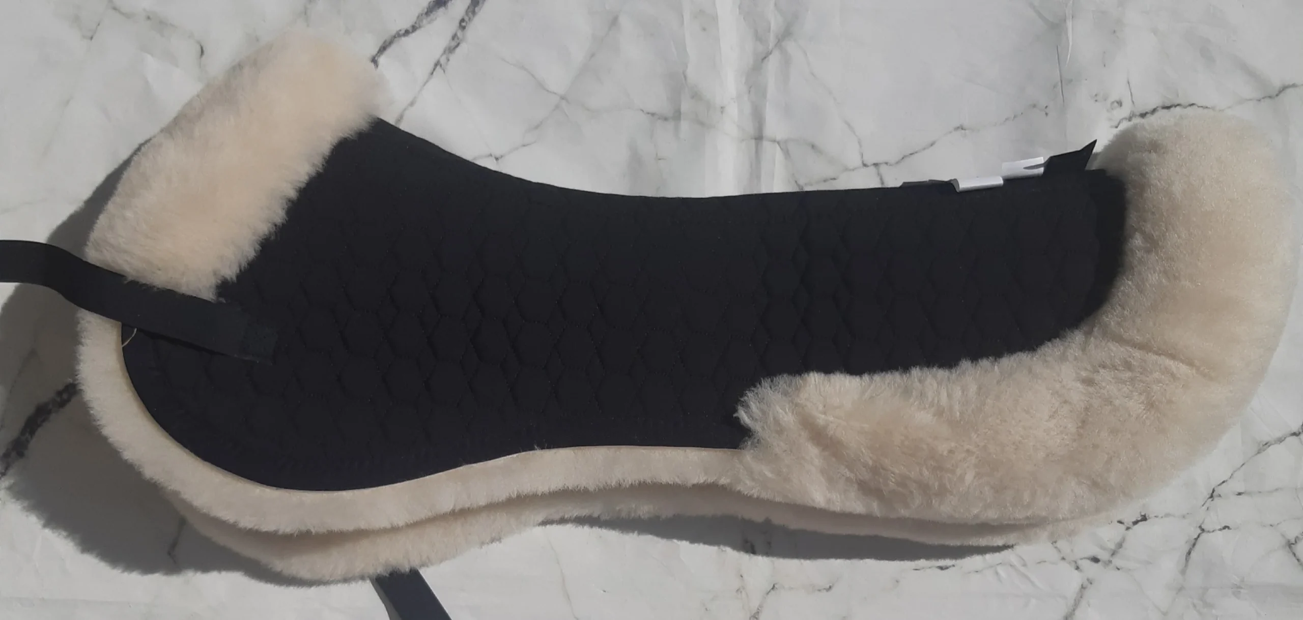Amortisseur MATTES avec peau d’agneau extérieur. Amortisseur en coton piqué serré, avec bordures avant et arrières en peau d’agneau véritable.