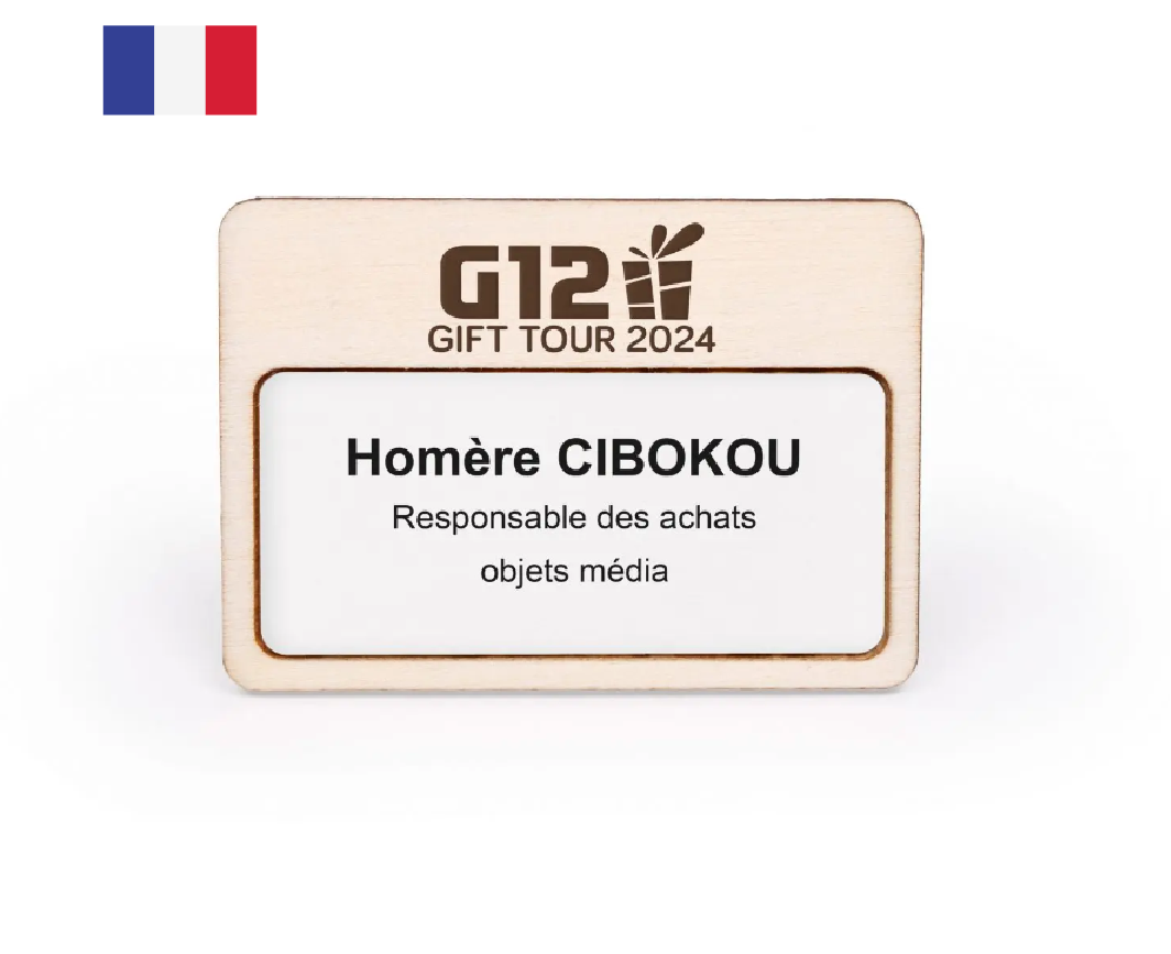 Réalisé dans le Jura par une PME experte du travail du bois, ce badge nominatif en contreplaqué de peuplier reflète un savoir-faire local et un engagement environnemental fort. Les matériaux utilisés proviennent de forêts gérées durablement, garantissant ainsi une production respectueuse de la nature. L’ensemble de la fabrication et de l’impression est effectué en France, pour réduire le transport et soutenir l’économie locale.