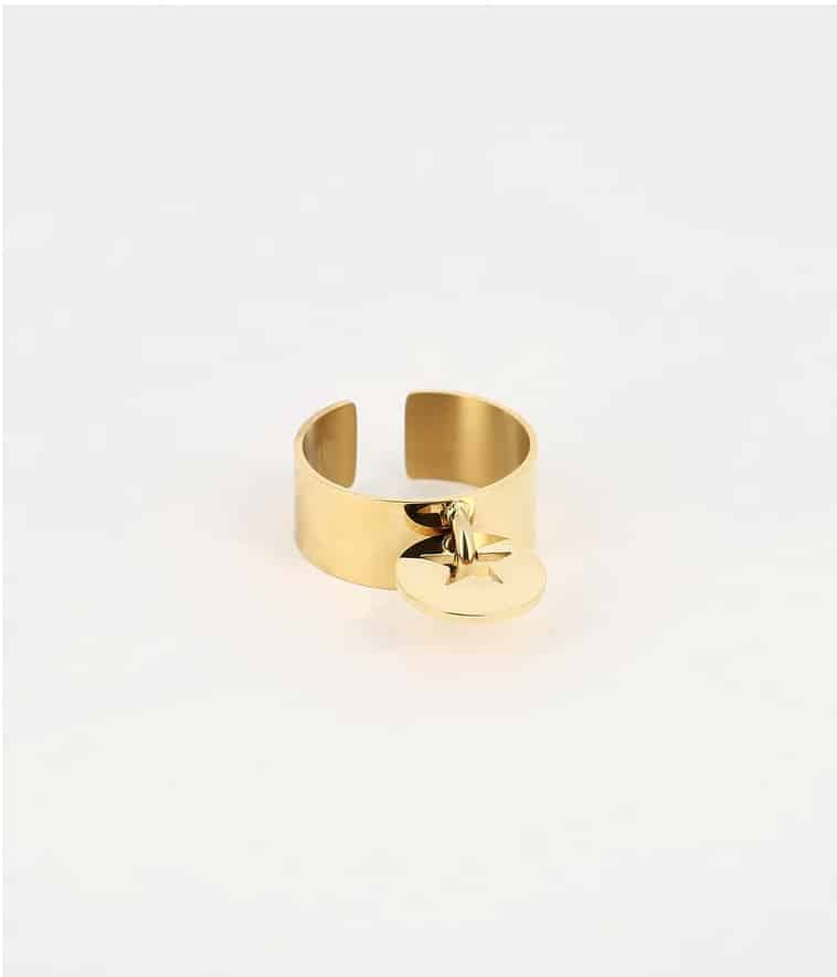 Bague Solaria – Zag Bijoux ajustable en acier uni sur laquelle est accroché en son centre un anneau mobile gravé d’une étoile. Une très jolie pièce décidément indémodable.