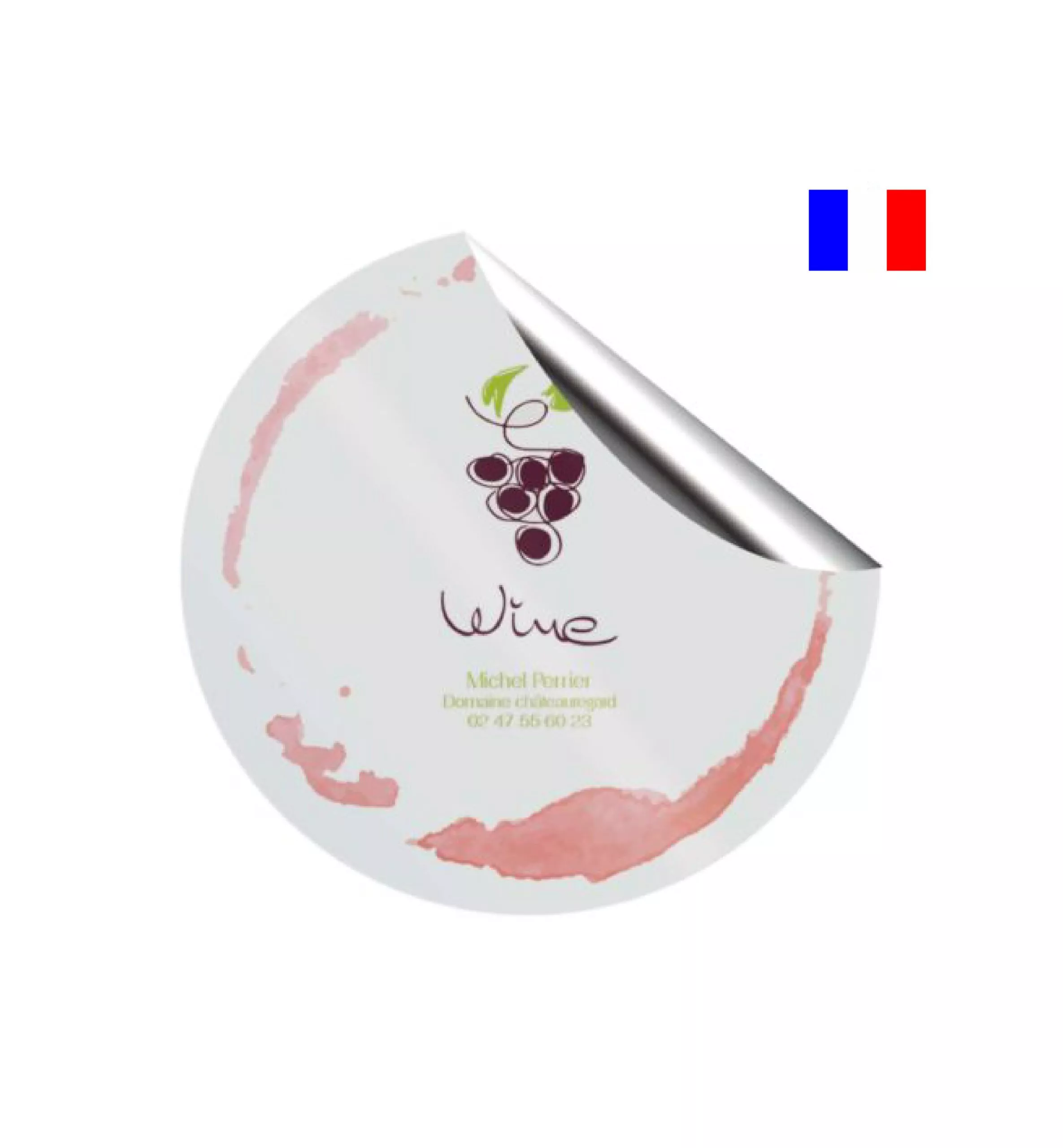 Bec verseur anti gouttes, en PET laminé semi-rigide métal argent, 100% personnalisable, idéal pour le vin ou autres bouteilles. Made in France. Réf.: 067A01116