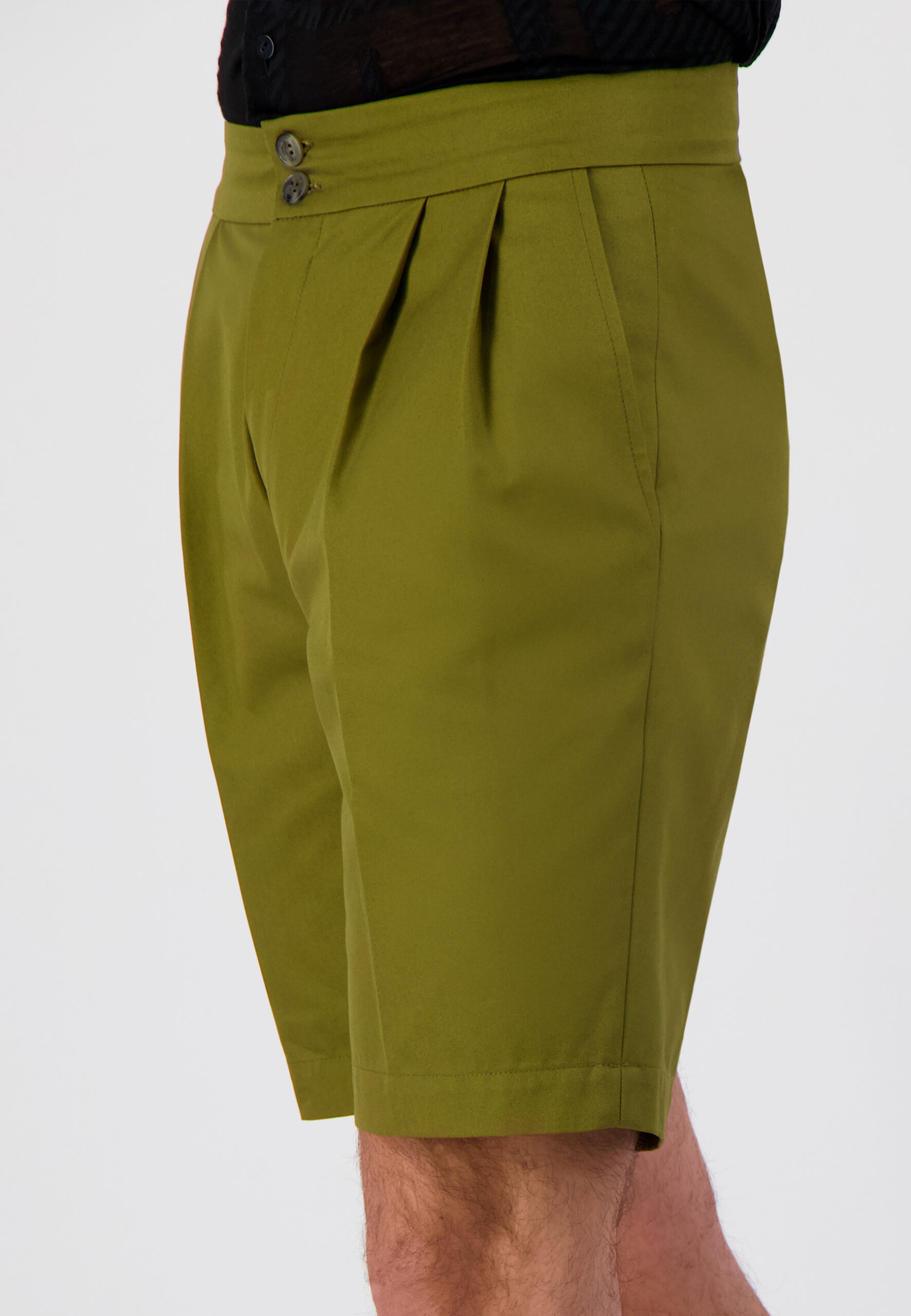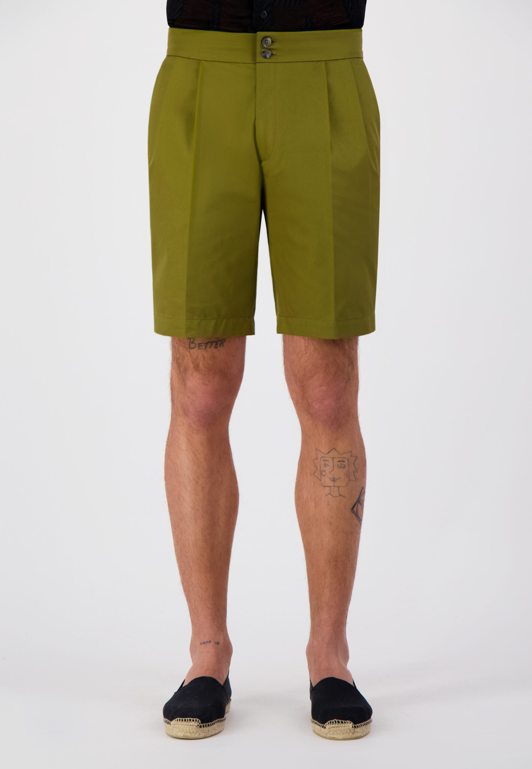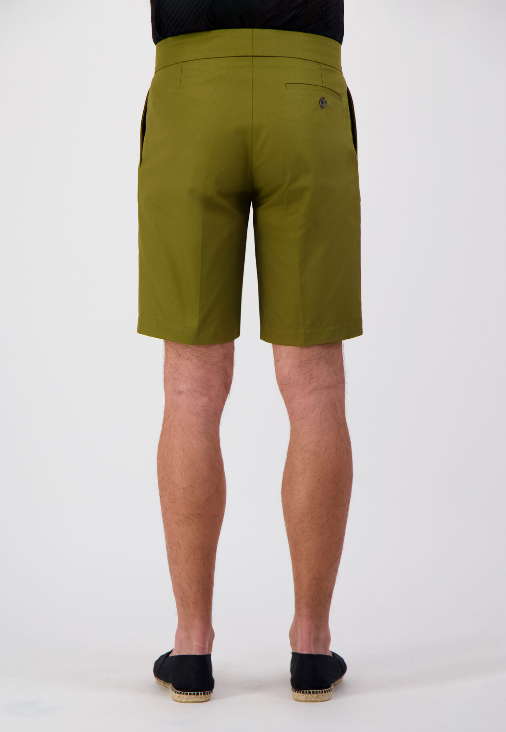 Bermuda deux pinces en gabardine kaki • Poches italiennes • Ceinture haute à deux boutons • Poche dos passepoilée Composition et entretien : • 100% Coton • Lavage machine 30° Notre mannequin Lucas mesure 185 cm et porte une taille 38