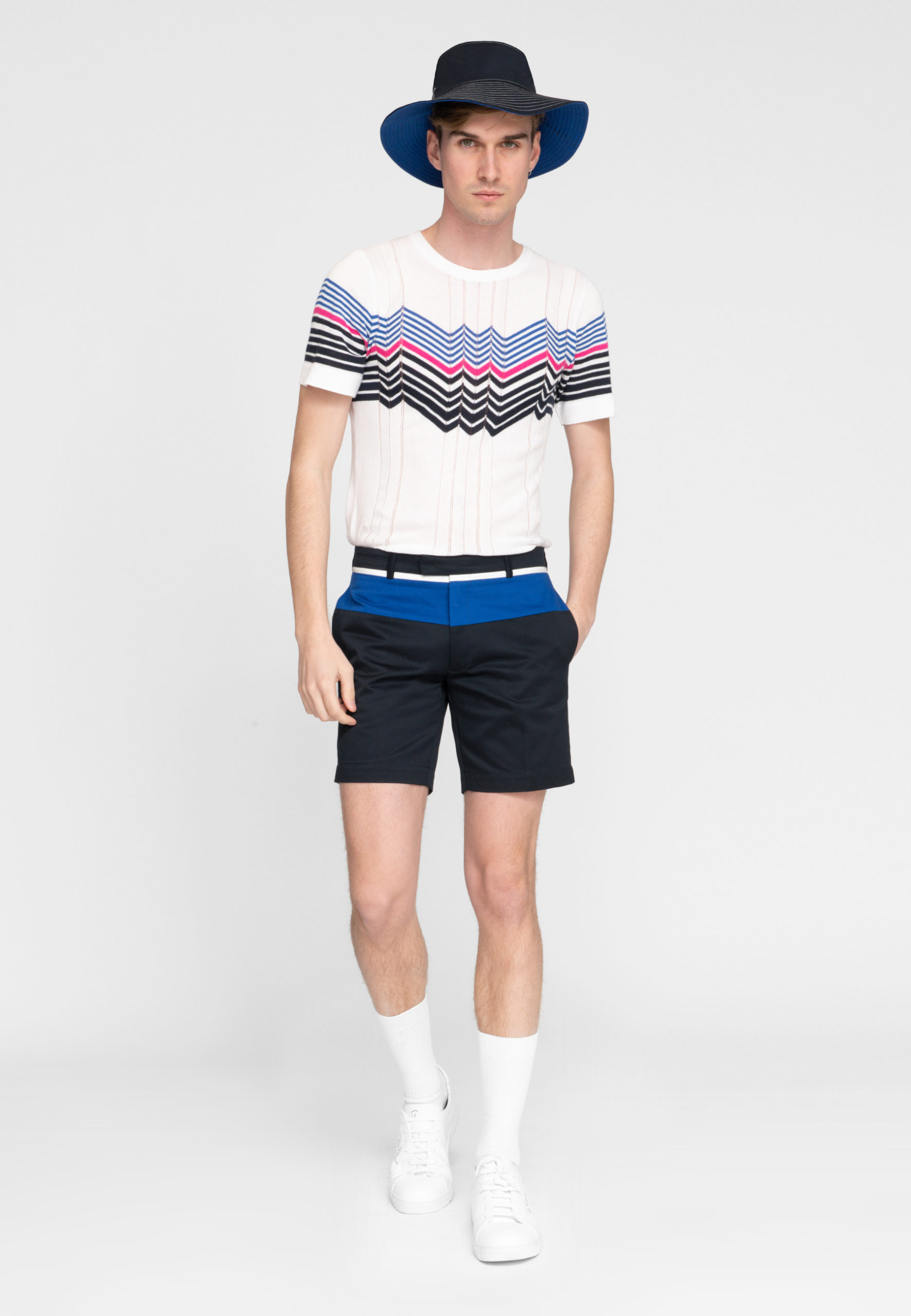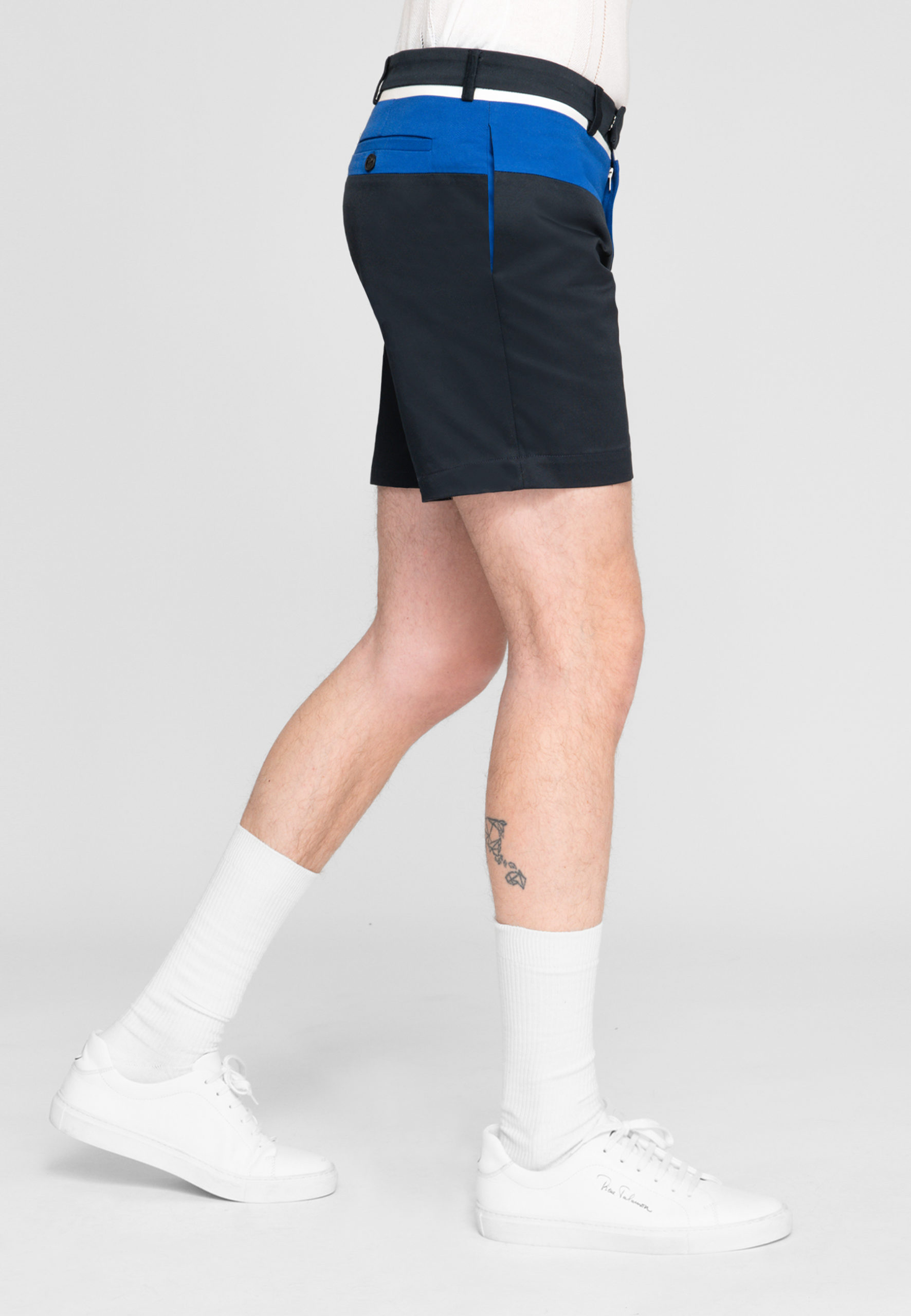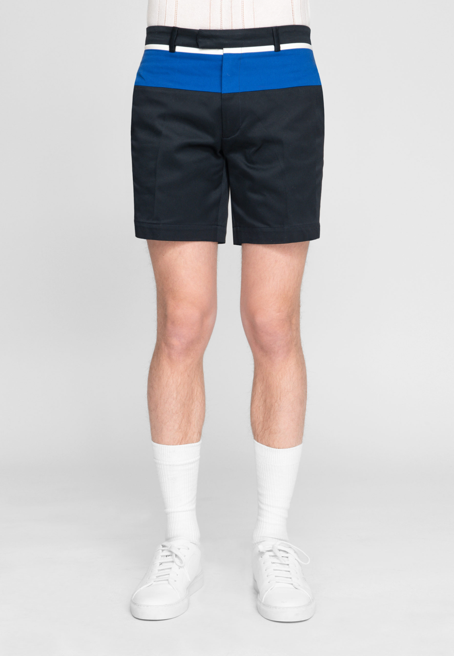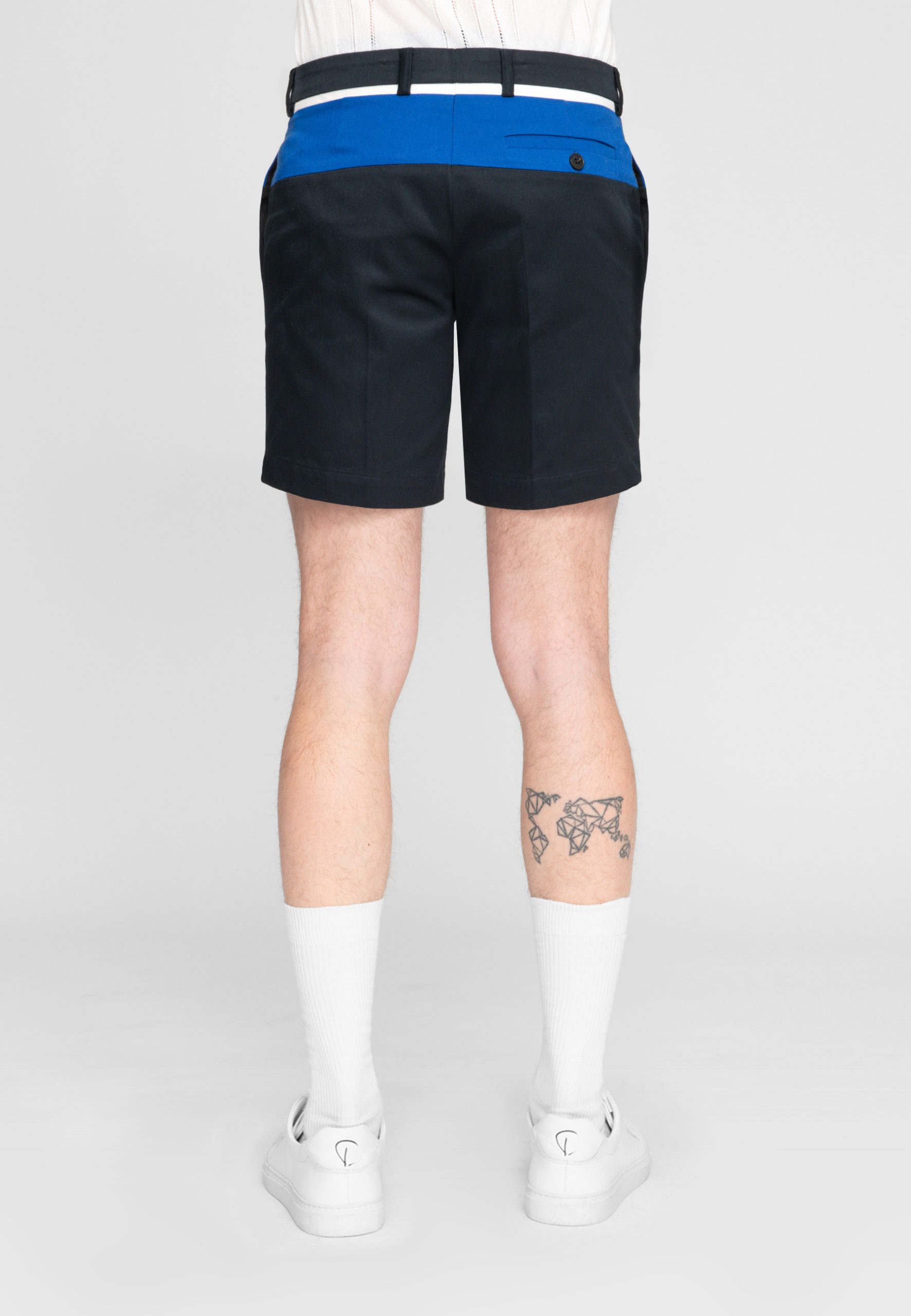 • Bermuda bleu marine • Incrustations bleu roi et blanc • Slim fit • Poches coutures • Poche dos passepoilée • 100% coton • Lavage machine 30° Notre mannequin Edouard mesure 186 cm et porte une taille 38