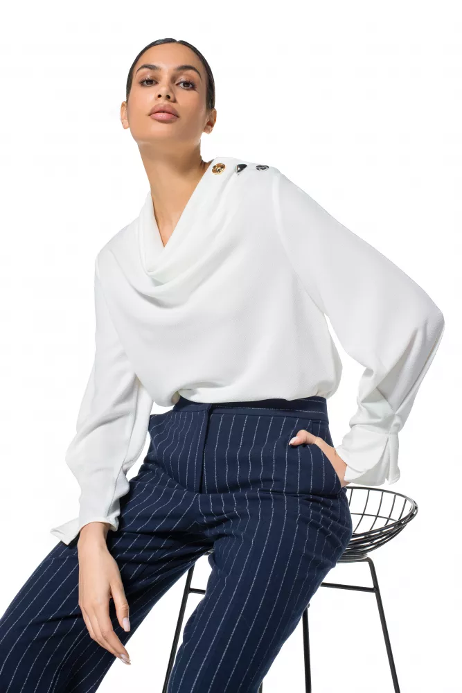 Blouse Col V Manches Longues Deux Poches Strass Unie