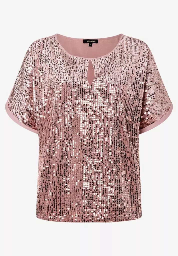 Blouse Col Rond Goutte Manches Courtes Sequins Dos Transparent