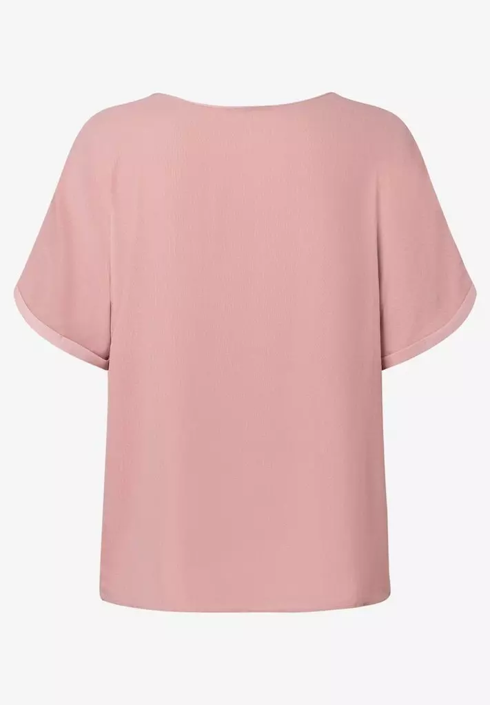 Blouse Col Rond Froncé Manches Courtes Bimatière Unie