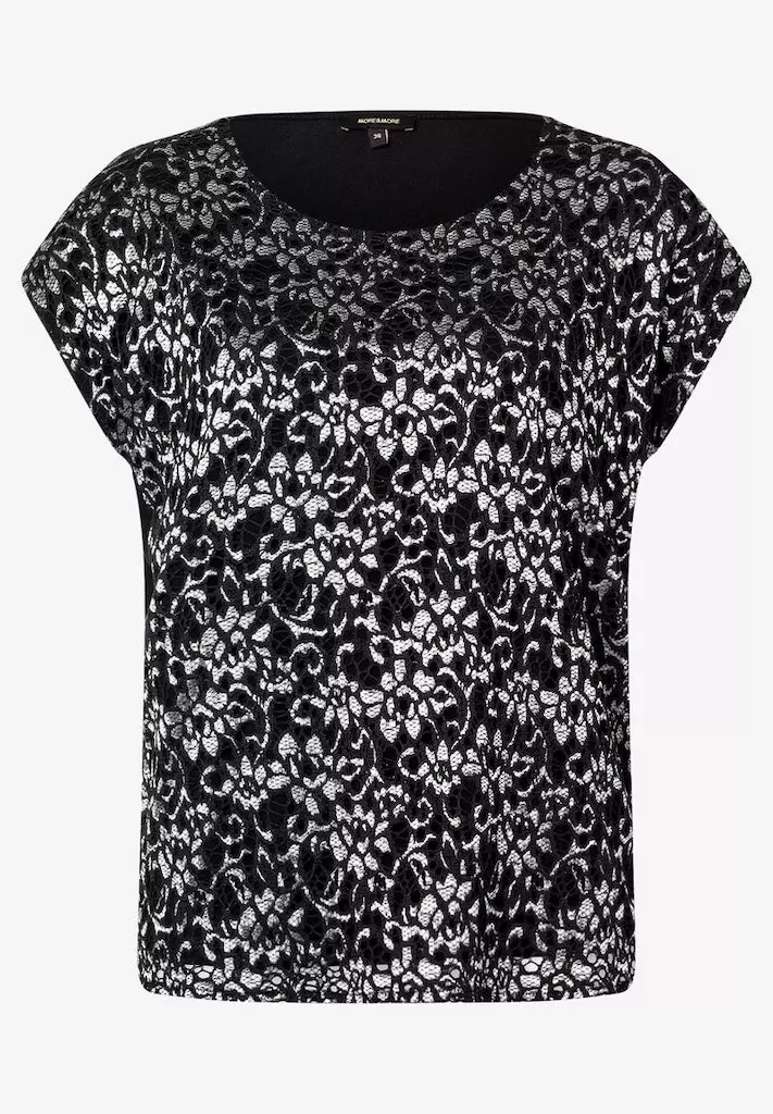 Blouse col rond manches courtes guipure fils dorés