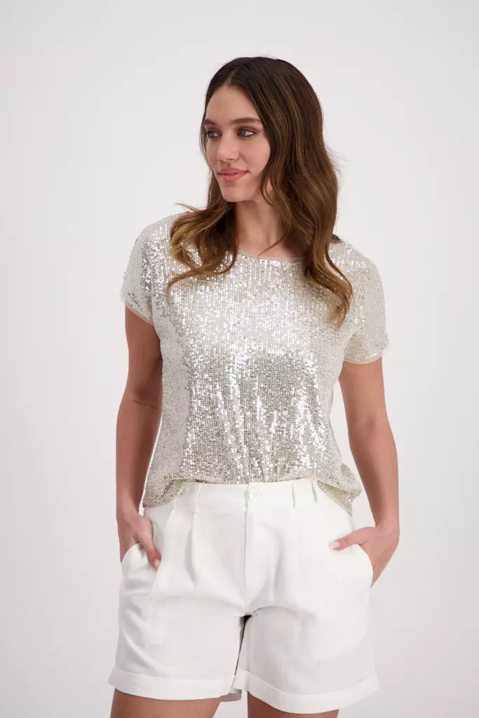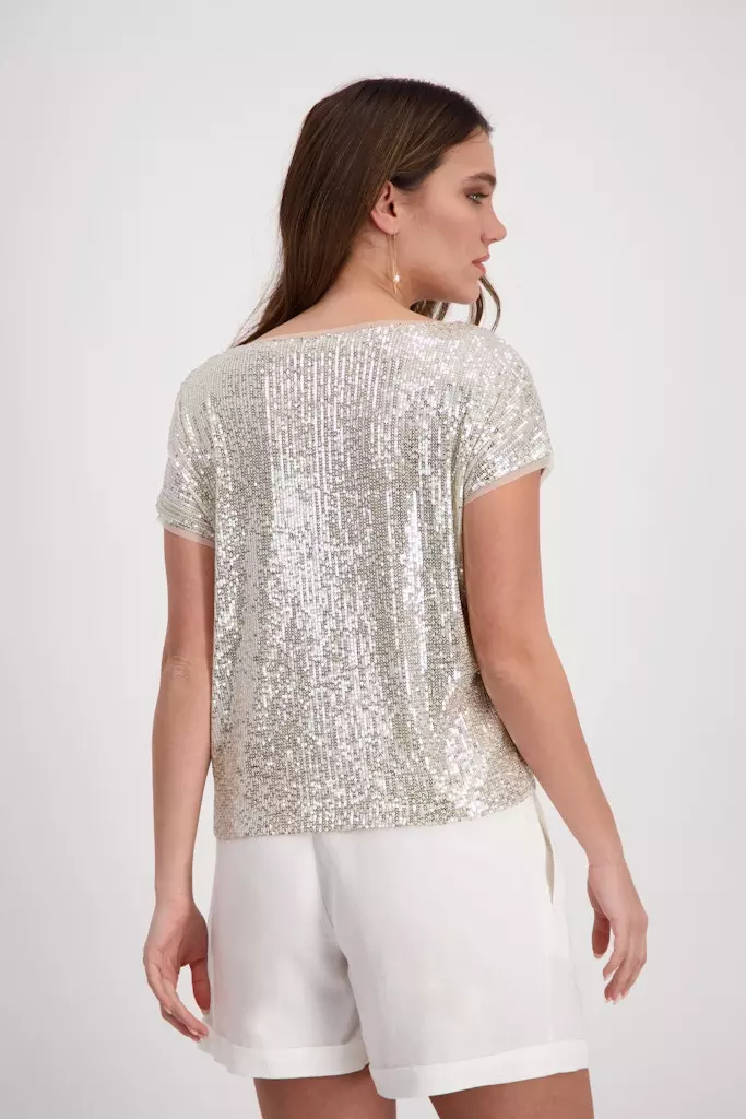 Blouse Col Rond Manches Courtes Paillettes