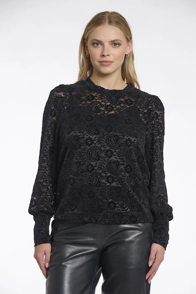 Blouse Col Rond Manches Longues Dentelle