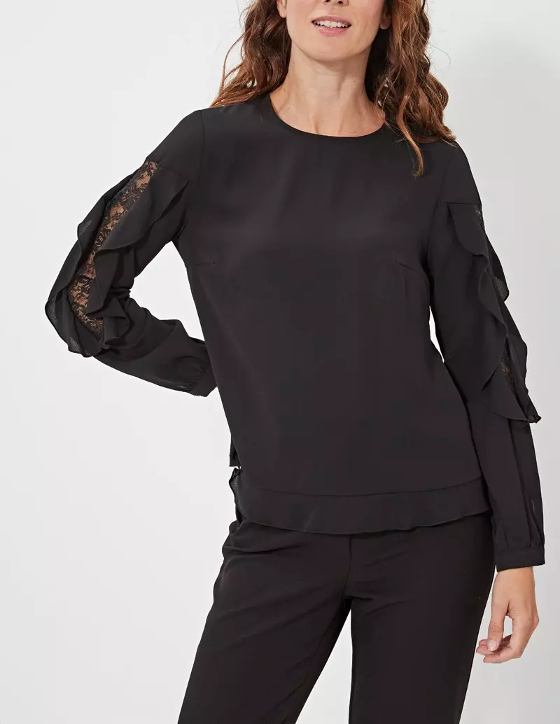 Blouse Col V Manches Longues Deux Poches Strass Unie