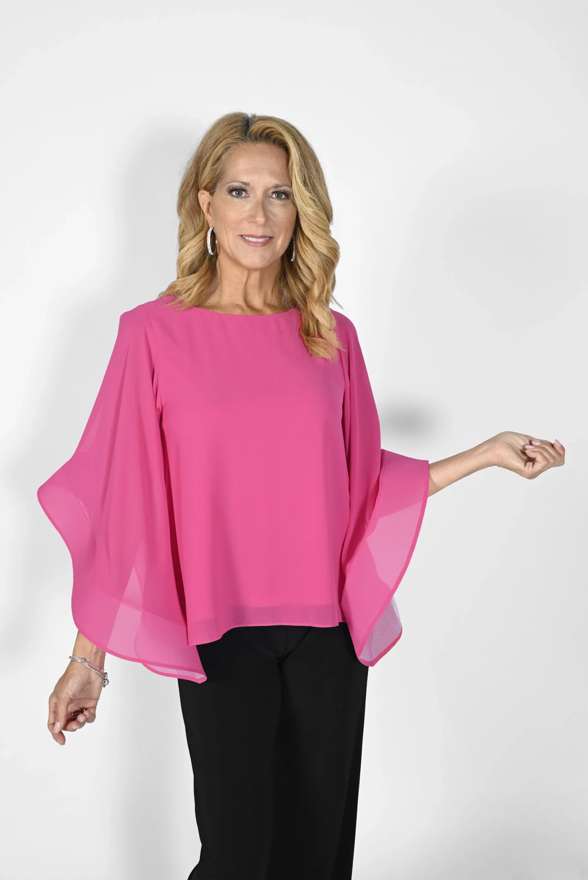 Blouse col rond manches longues papillons