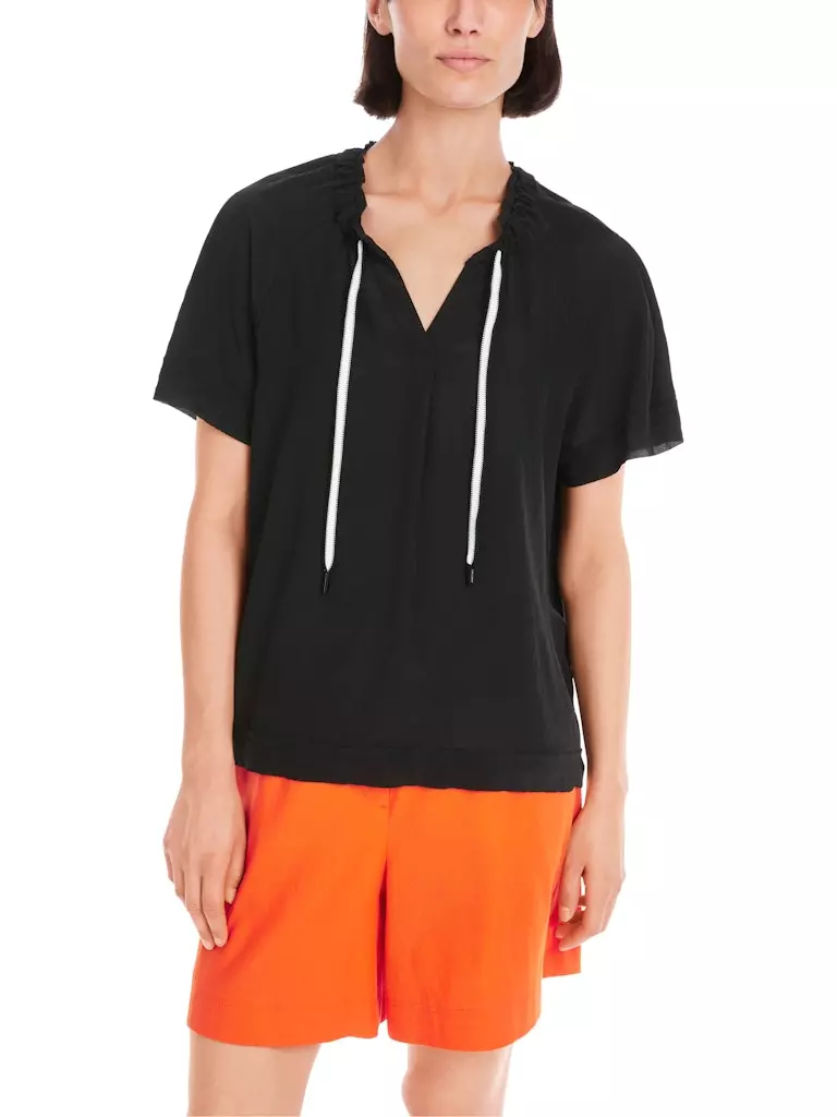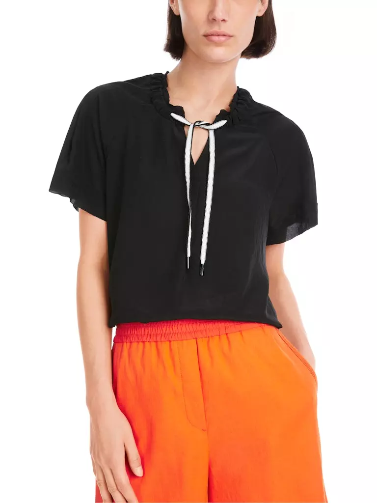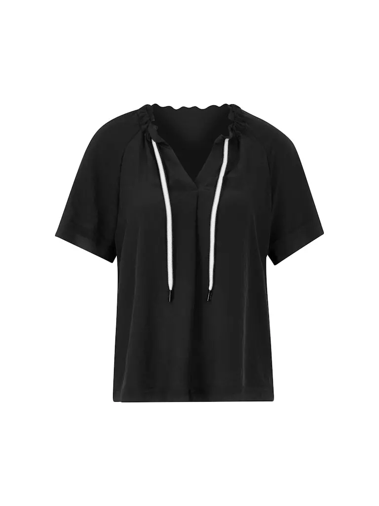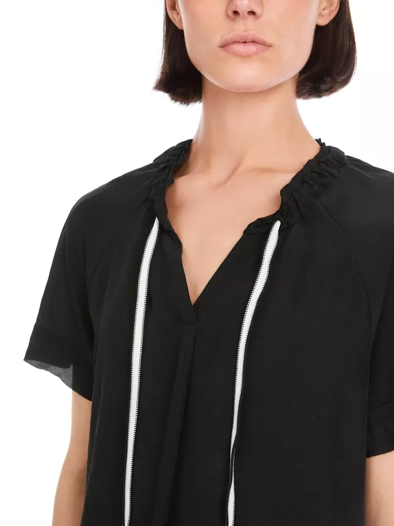 Blouse Col V Manches Courtes Fluide Cordons Unie
