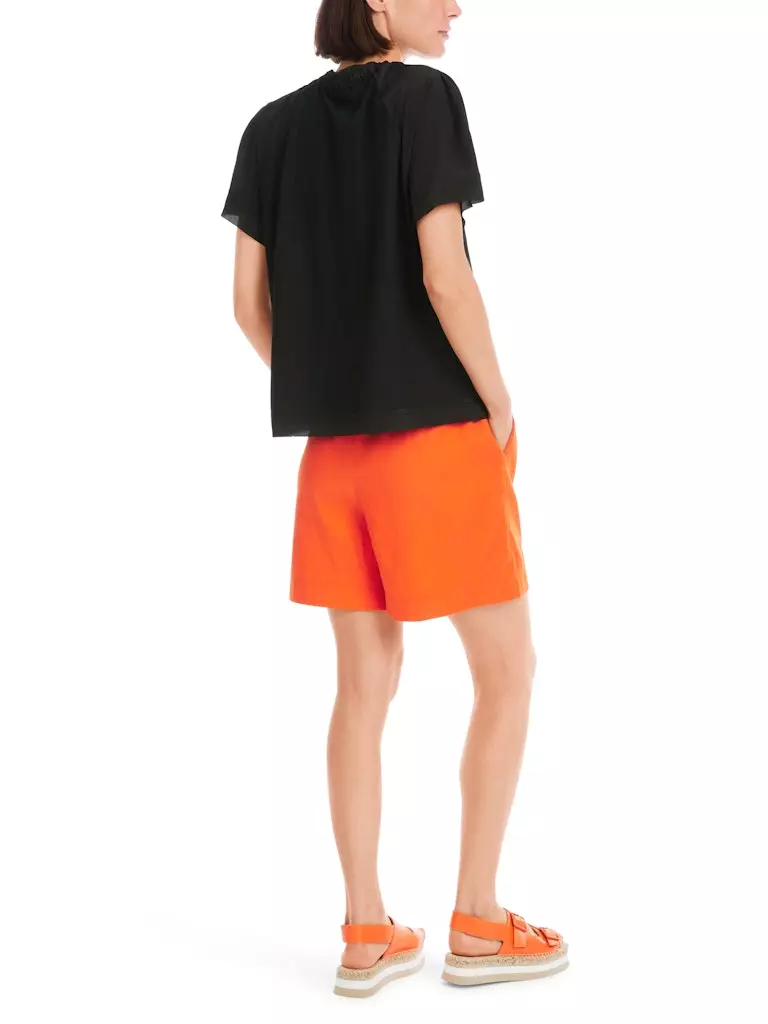 Blouse Col V Manches Trois-quarts élastiquées Unie
