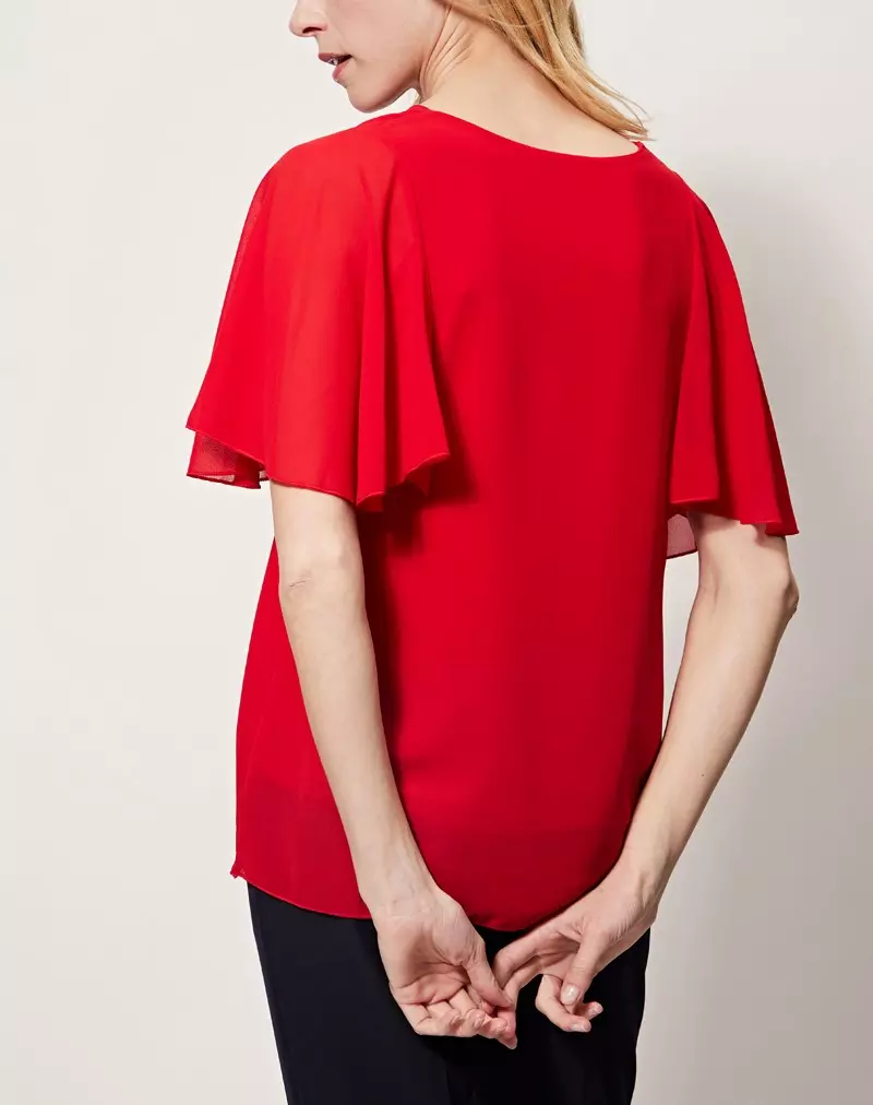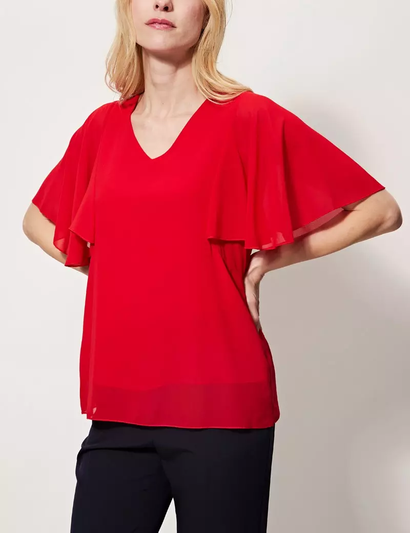Blouse col v manches courtes volants unie
