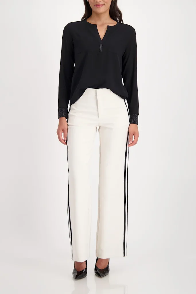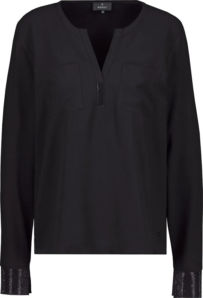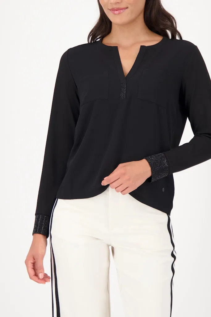 Blouse Col V Manches Longues Bas Strass Deux Poches Dos Jersey