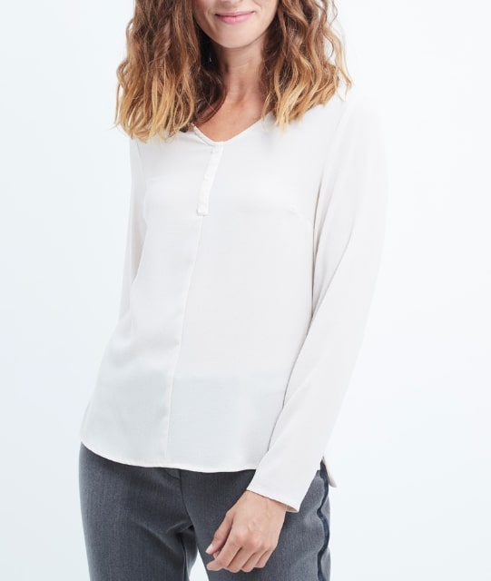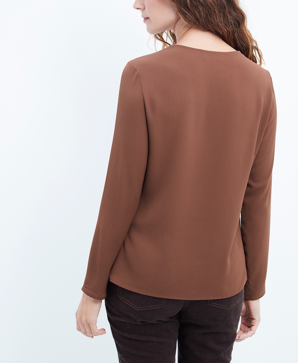 Blouse Col V Manches Longues Deux Poches Strass Unie