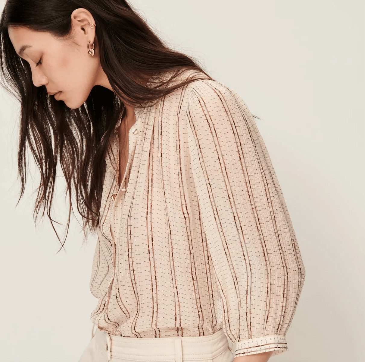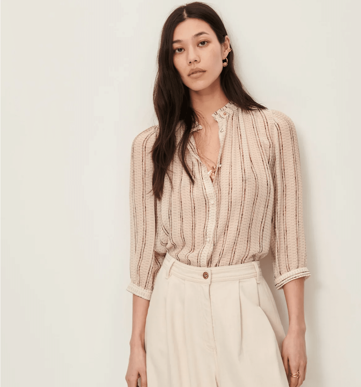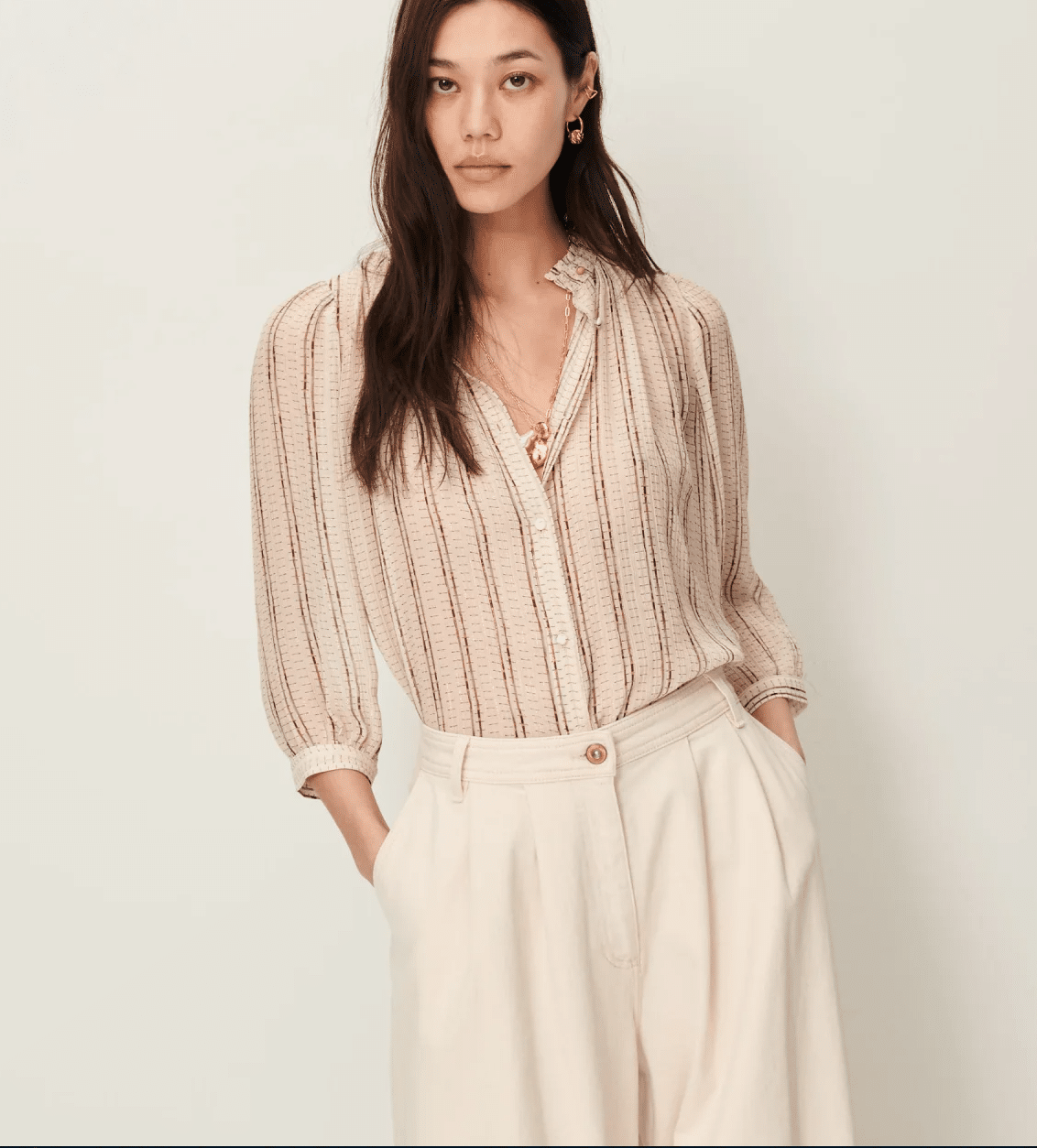 louse Lylee sessun Blouse à col montant volanté en crépon mousseline de soie Viscose imprimé, à fines rayures métallisées, motif exclusif Sessùn.