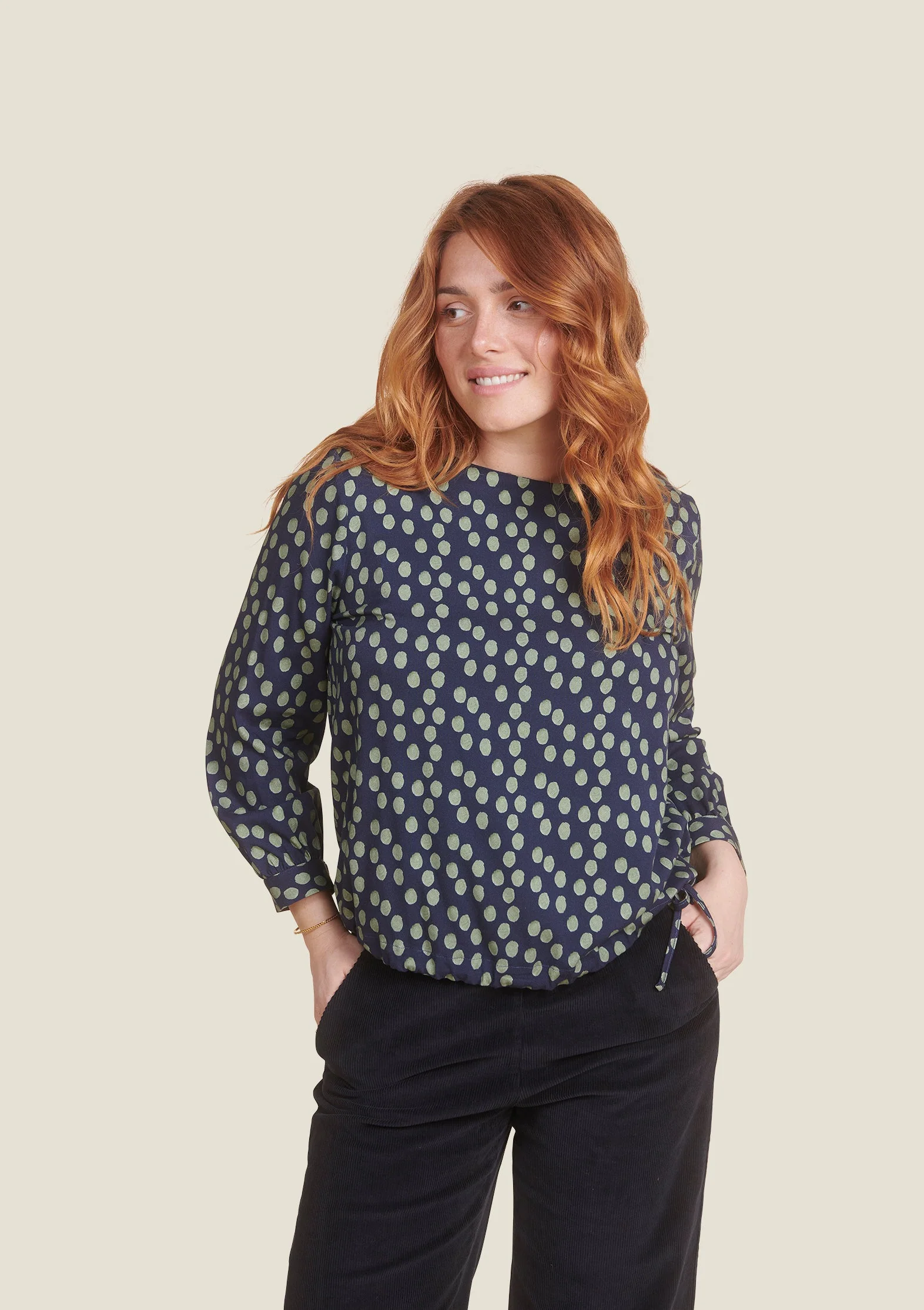 Les pois réinventés par Sophie, notre graphiste Made in Sens, s’invitent sur cette blouse fluide et féminine, dessinés au pastel pour un rendu artistique et doux.