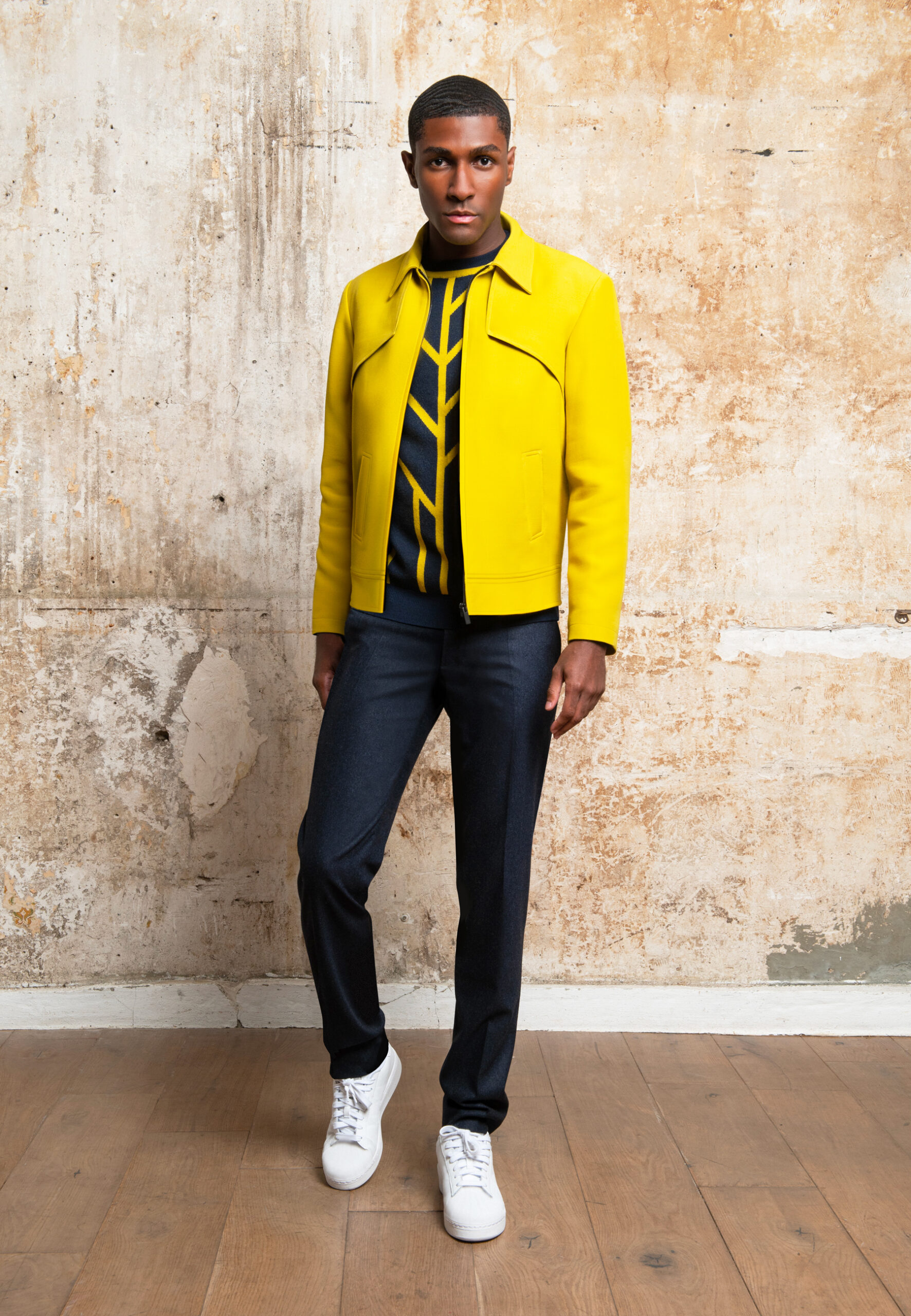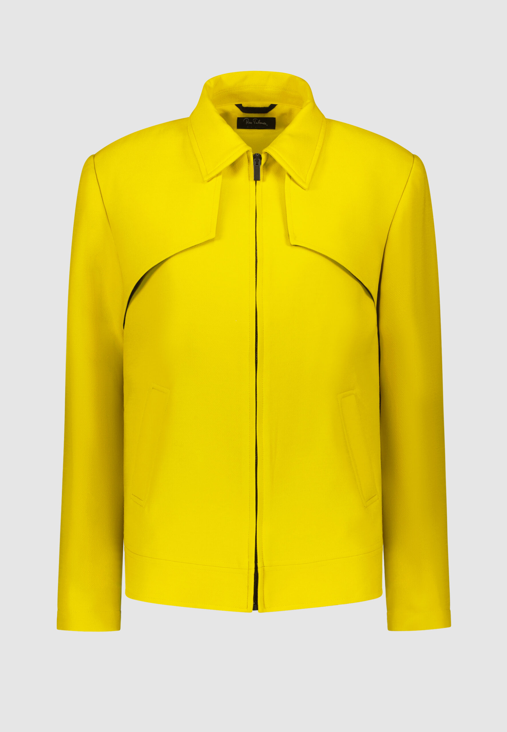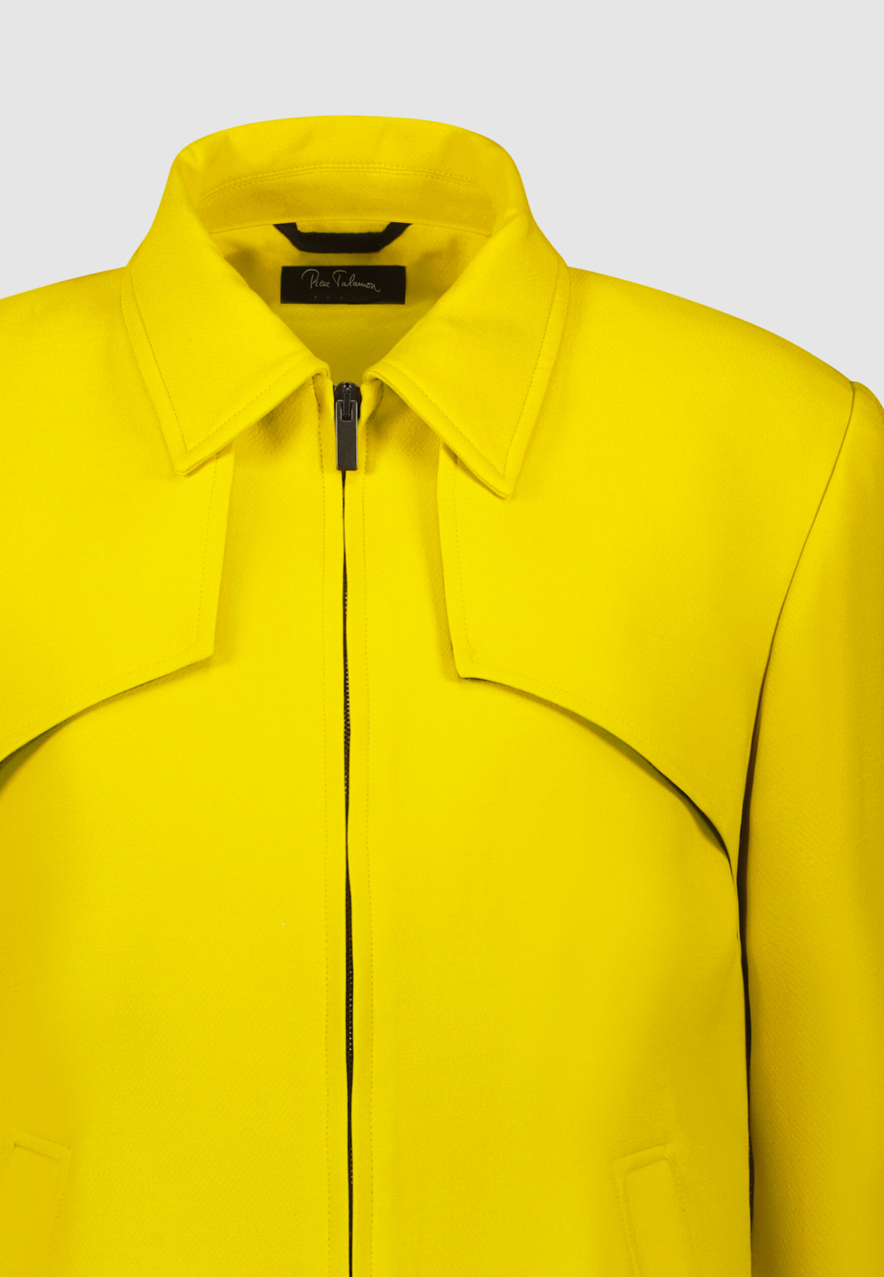 Blouson court en laine & soie jaune anisé • Coupe droite • Col chemise • Bavolets sur le devant • Bas à bande rapportée • Fermeture à zip • Deux poches passepoilées • Deux poches intérieures Composition et entretien : • 77% laine 23% soie • Doublure viscose • Nettoyage à sec