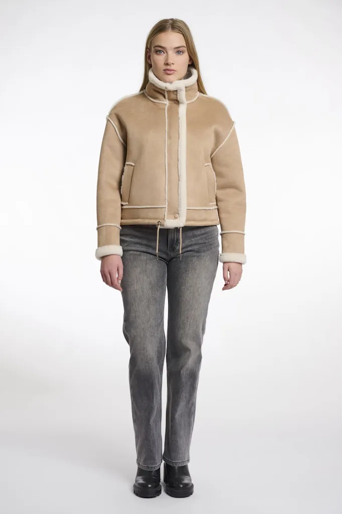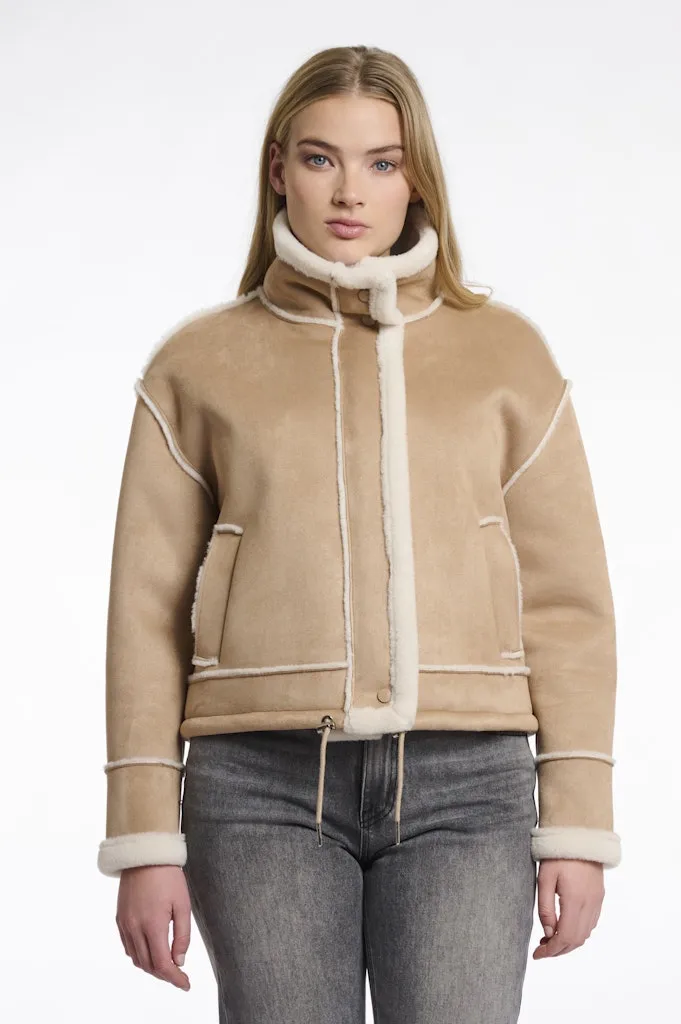 Blouson Fourré Court Aviateur Col Montant Manches Longues Zippé Deux Poches Uni