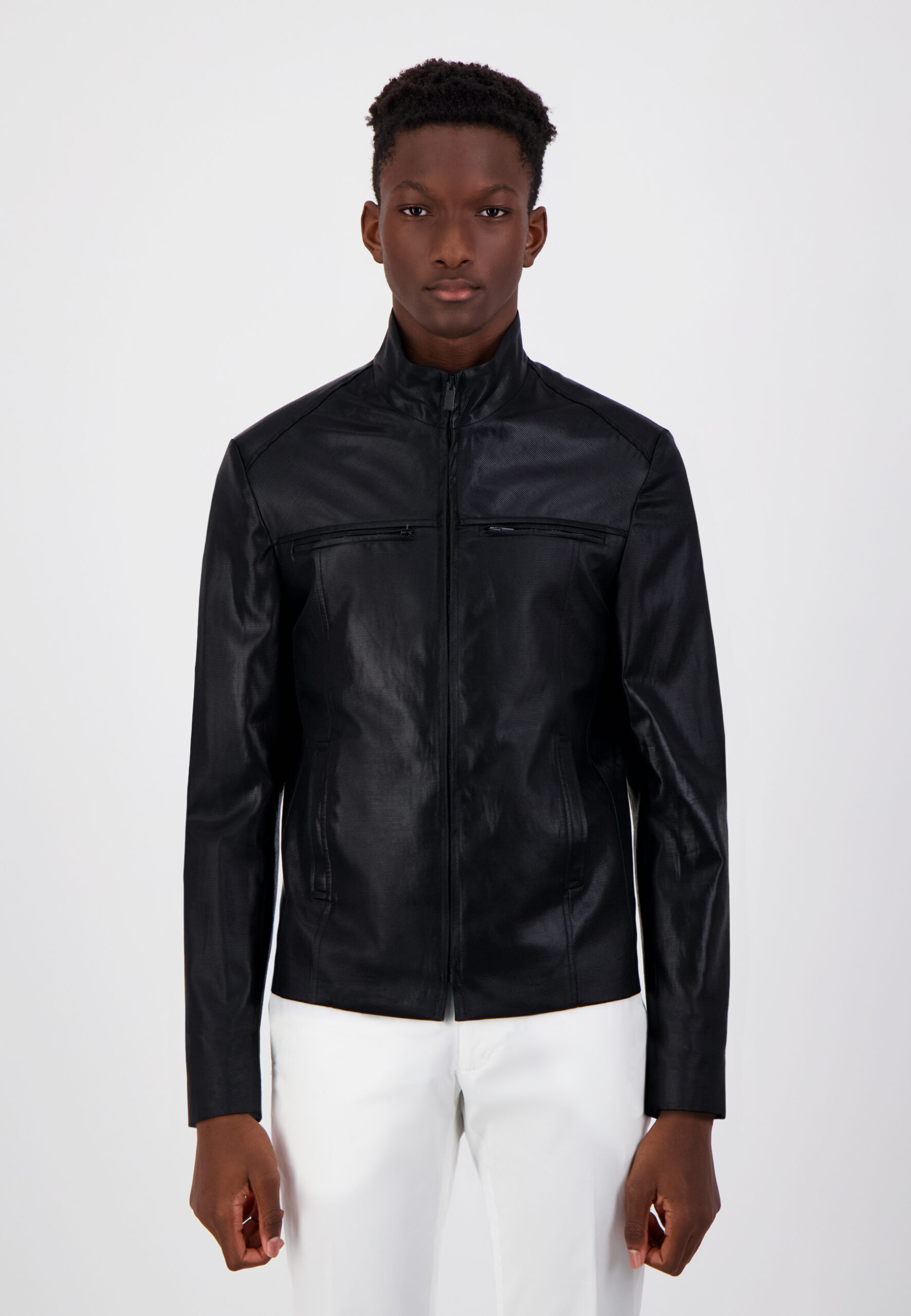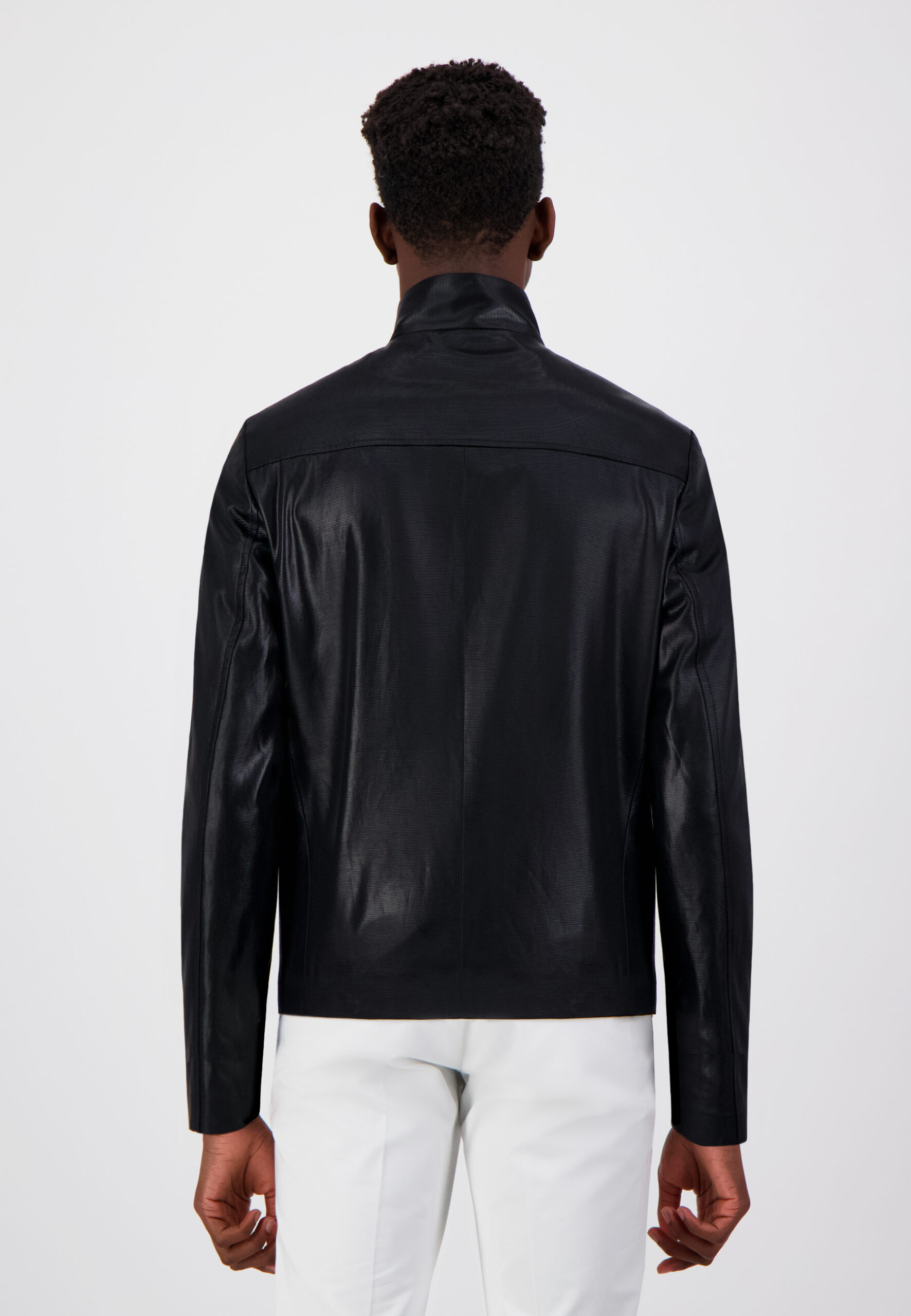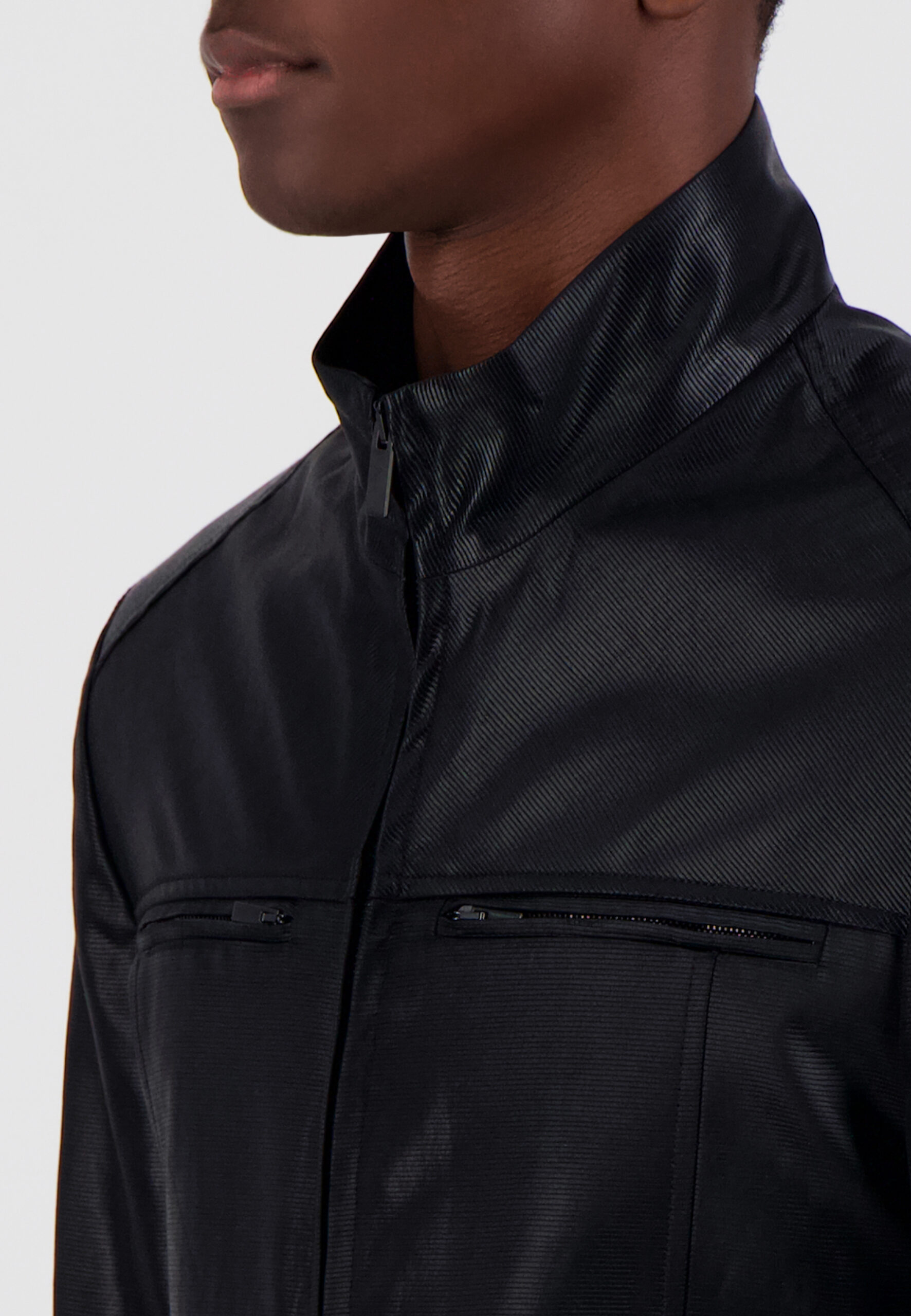 Blouson court en tissu ottoman noir • Coupe droite • Col montant • Fermeture à zip • Deux poches passepoilées • Deux poches poitrine à zip • Deux poches intérieures Composition et entretien : • 50% Coton 50% Acetate • Doublure viscose • Nettoyage à sec Notre mannequin Kassim mesure 186 cm et porte une taille 46