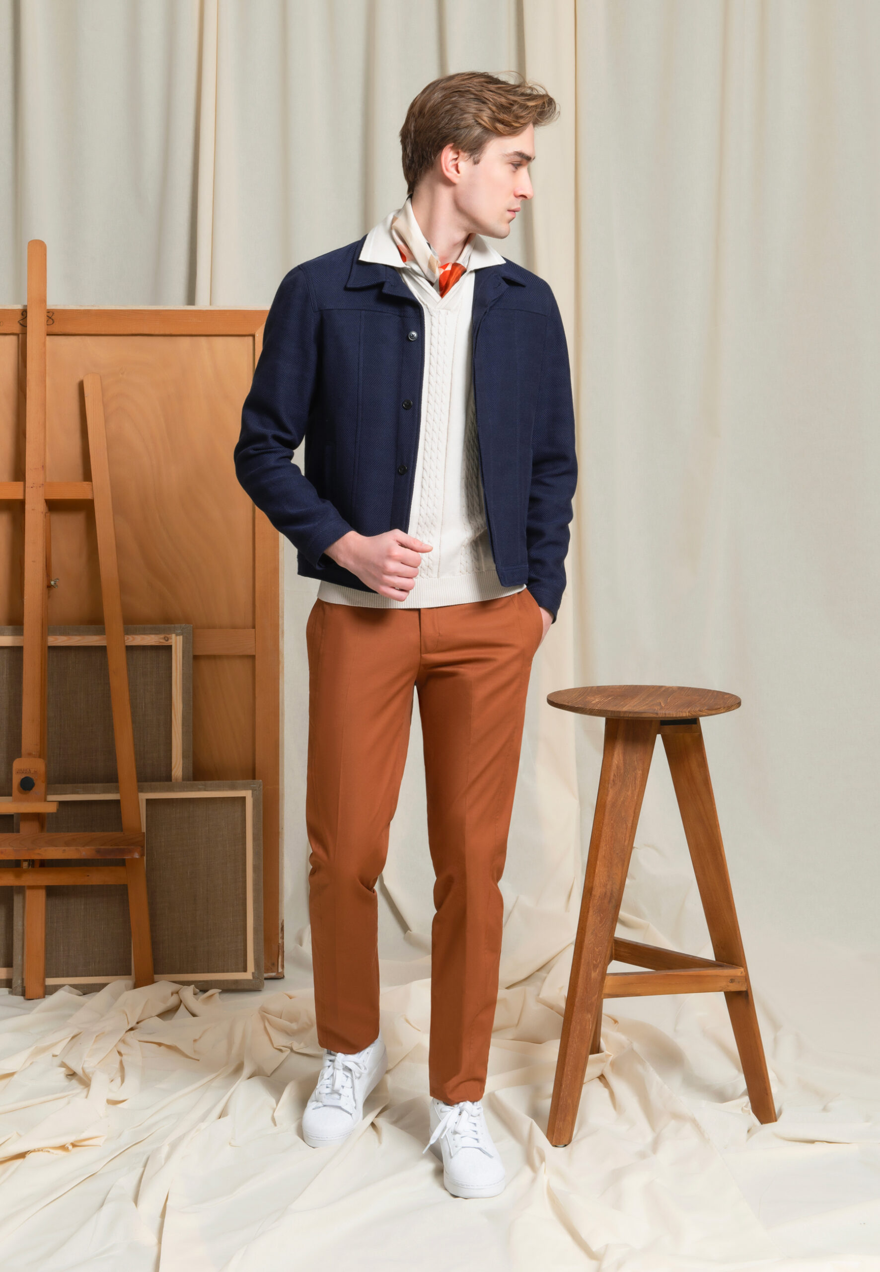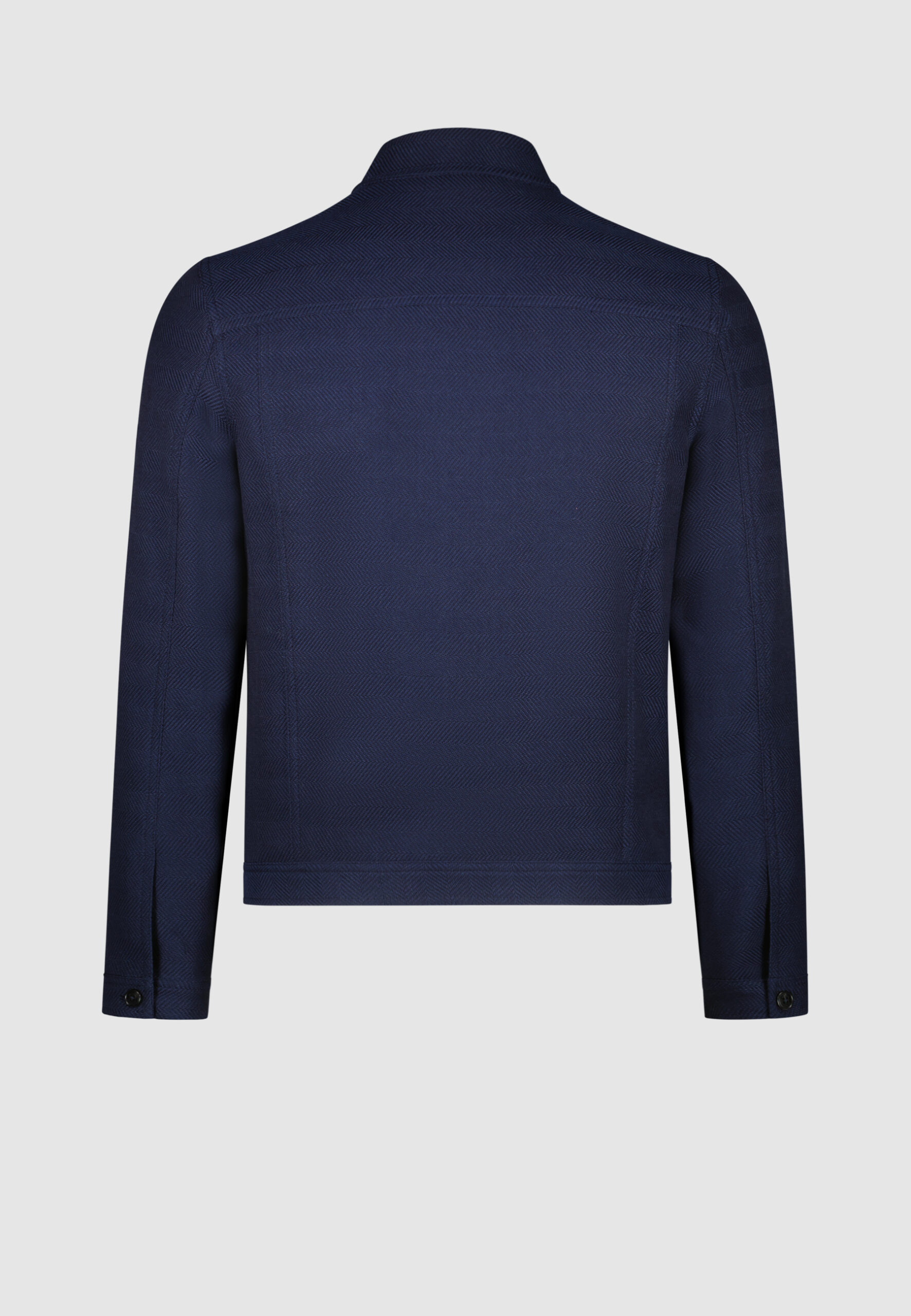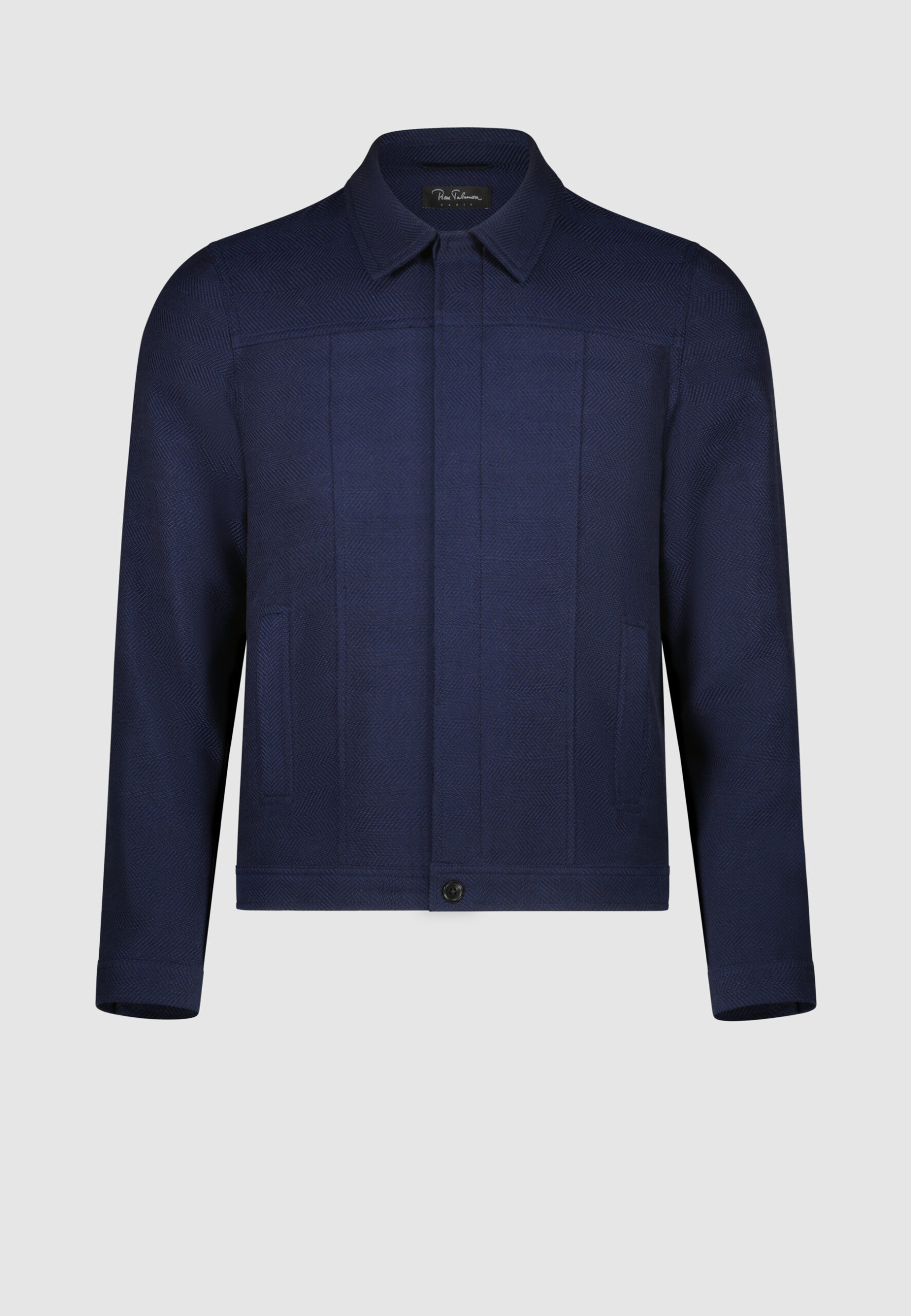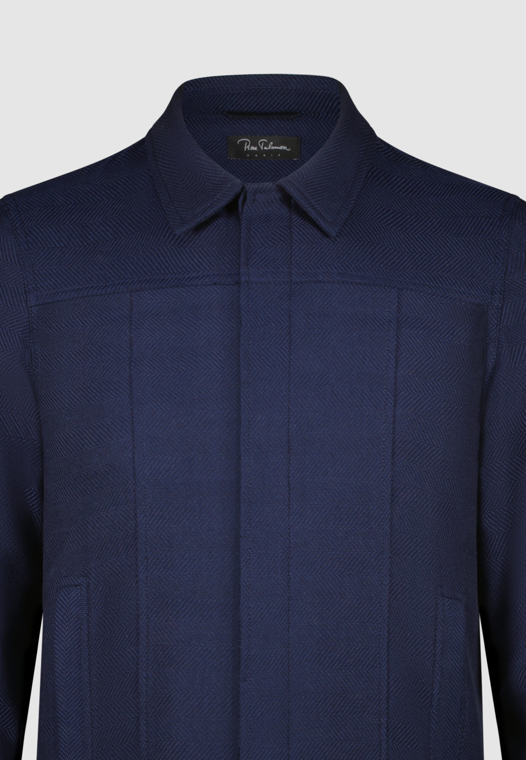 Blouson court en sergé à chevron bleu marine • Coupe droite • Col chemise • Boutonnage caché • Poignets boutonnés • Deux poches passepoilées • Deux poches intérieures Composition et entretien : • 70% Coton 30% Lyocell • Doublure viscose • Nettoyage à sec Notre mannequin Edouard mesure 186 cm et porte une taille 46
