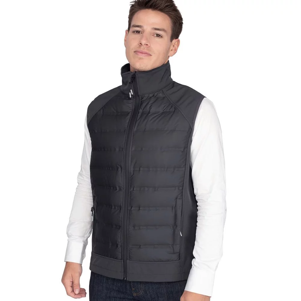 Ce bodywarmer bi-matière hybride, pour sa combinaison softshell-doudoune, est imperméable et déperlant.