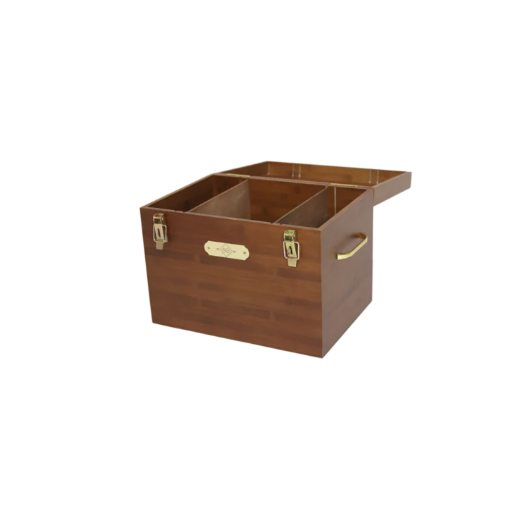 Cette boîte de pansage est idéale pour stocker vos produits et matériel de pansage en concours comme à la maison. Elle mesure 30cm de haut, 40cm de large et 28cm de profondeur. La partie supérieur s’ouvre et peut être fermée grâce à deux fermetures à cliquet dorées sur lesquels vous pouvez ajouter un cadenas si vous le souhaitez. A l’intérieur, vous trouverez un grand compartiment (25x38x26 cm) qui peut être divisé en deux ou trois compartiments grâce aux deux fines planches amovibles. Vous pouvez organiser l’intérieur de votre boîte comme vous le souhaitez ! Elle vous permet de stocker vos bouteilles de nettoyant pour cuir. La boîte est faite de bambou, ce qui la rend extrêmement résistante et très facile à nettoyer. Elle est également très légère et possède 3 poignées dorées, ce qui vous permet de l’emporter partout avec vous.