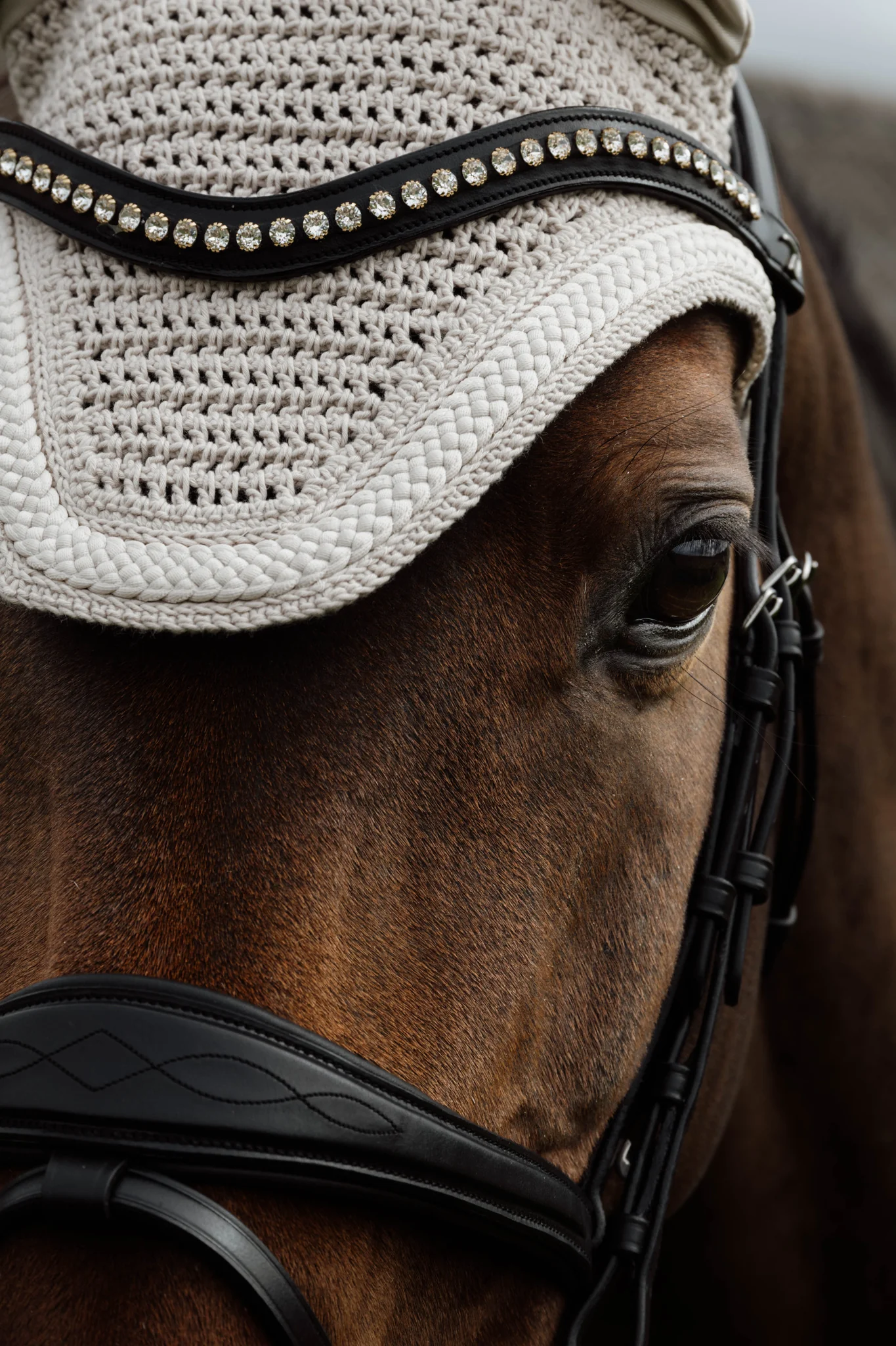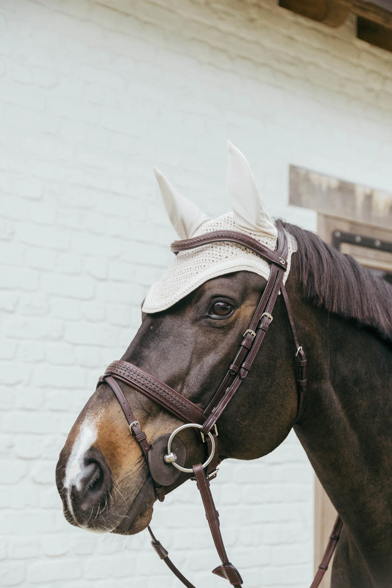 La matière autour des oreilles est extensible et ajustée. La partie sous la têtière est plus longue pour éviter que le bonnet ne glisse ou ne bouge pendant la monte.