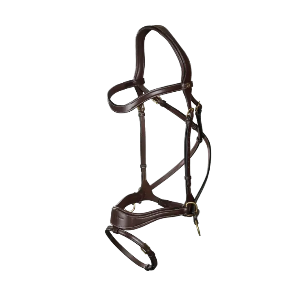 Ce bridon vous accompagnera progressivement vers une équitation sans mors. Il a été spécialement conçu pour la monte anglaise et pensé pour le saut d’obstacle. L’option avec les mors a été pensée pour vous aider à la transition d’un bridon avec mors vers le sans mors. Lors des premières utilisations montez en combiné avec un mors : Mettez une paire de rênes sur le mors et une autre sur la muserolle. Commencez à monter avec la rêne sur le mors et progressivement utilisez la rêne de la muserolle. Vous pouvez ensuite retirer le mors une fois que la version sans mors vous convient et que votre cheval s’y retrouve.Lors de la transition vers le sans mors veillez à attacher correctement la muserolle pour vous assurer que celle-ci reste en position.