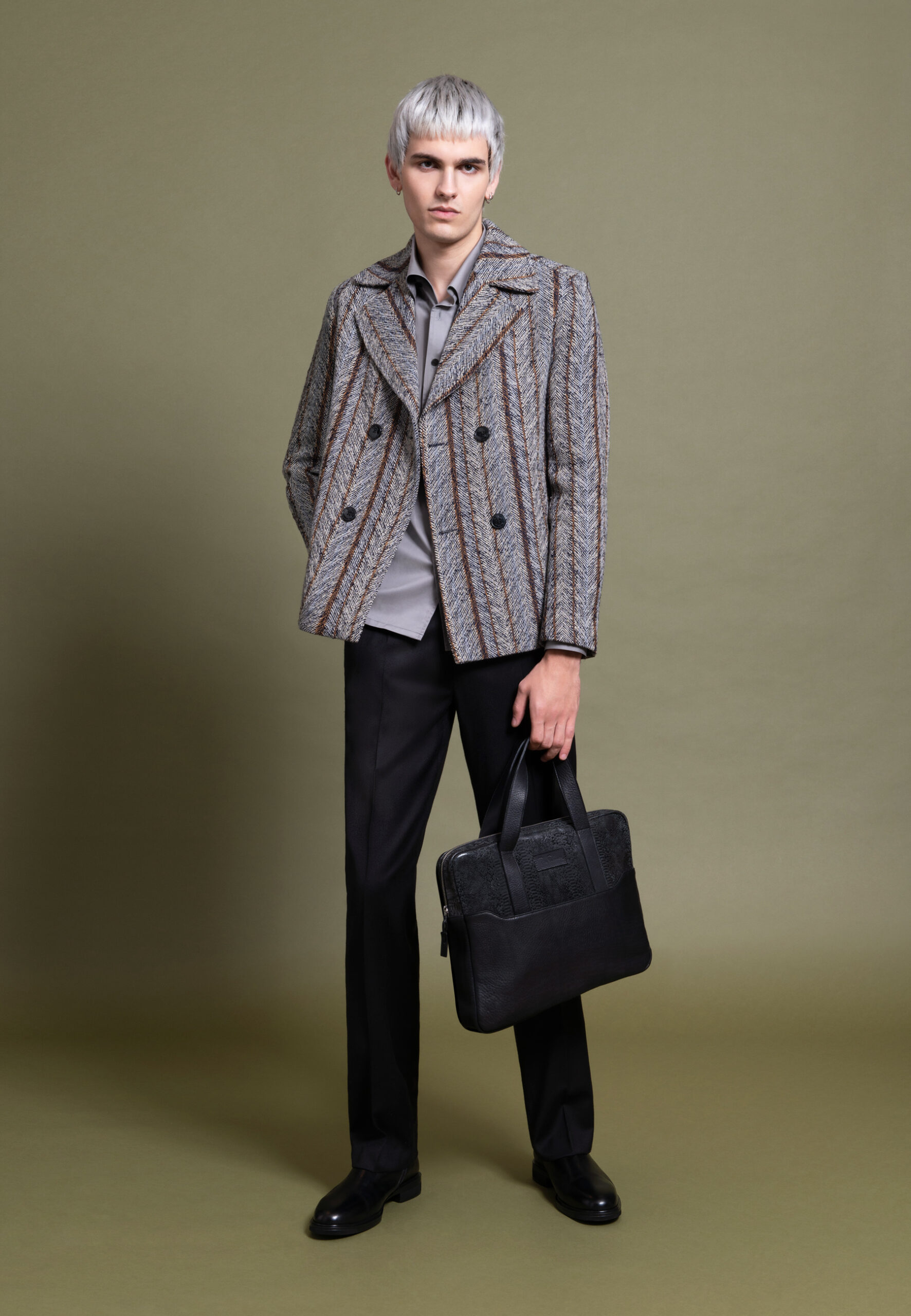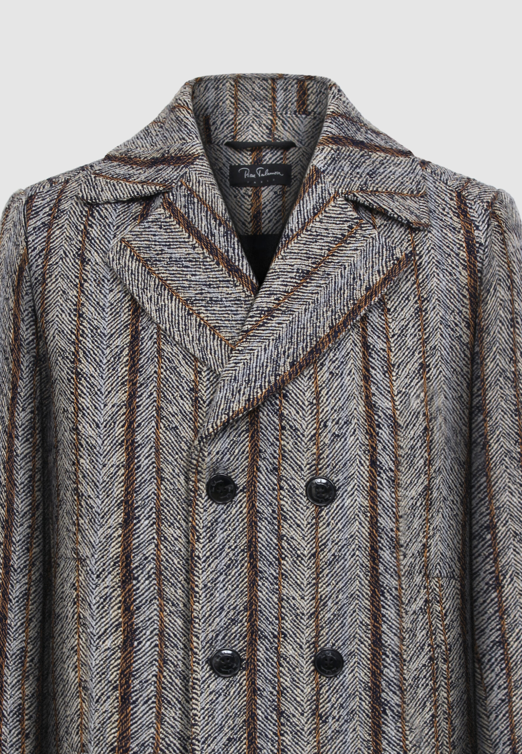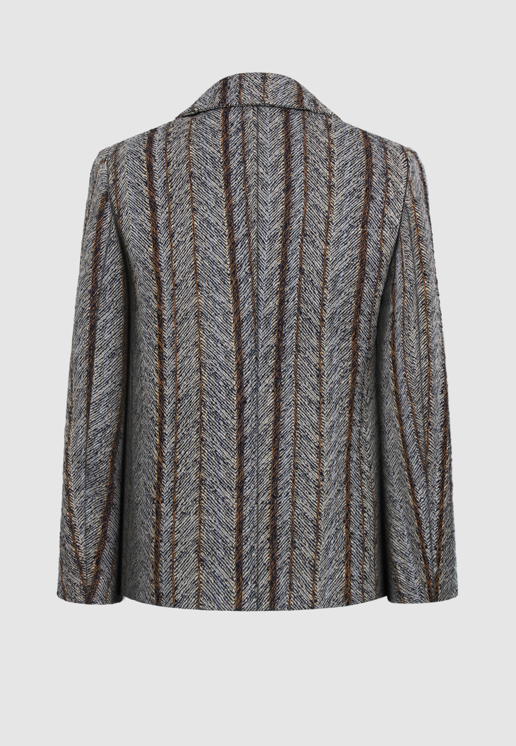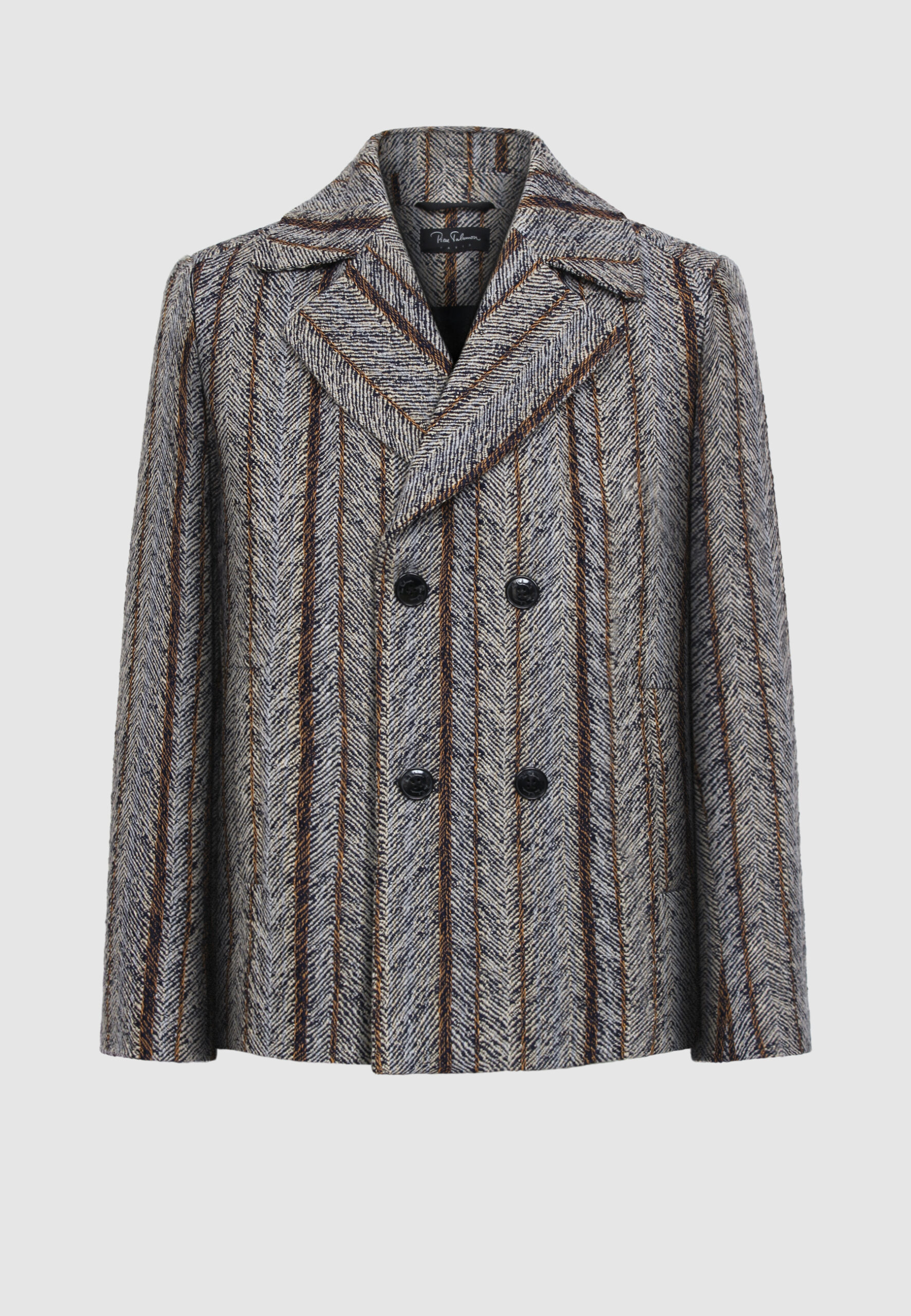 Caban en tweed à chevrons noir et blanc et rayures ocres • Col cranté • Boutonnage croisé • Deux poches passepoilées • Deux poches intérieures Composition et entretien : • 100% Laine • Doublure viscose • Nettoyage à sec Notre mannequin Roman mesure 186 cm et porte une taille 46