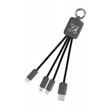 Ce câble éco quadra light est muni de câble, type C, IPhone, Android.