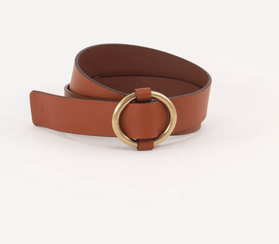 Ceinture boucle coulissante en cuir de vache tannage végétal.