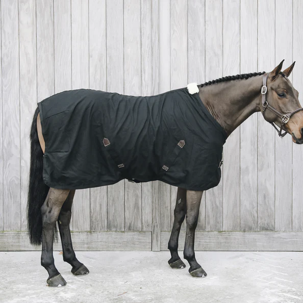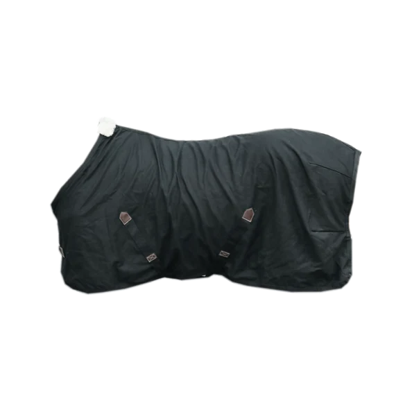 La Cotton Sheet est la couverture idéale pour que votre cheval soit à l’aise durant l’été ou le transport. Sa coupe anatomique ainsi que le mouton synthétique au garrot apportent un confort supplémentaire à votre cheval. La chemise est composée d’un mélange très solide de polyester et de coton. Le logo Kentucky Horsewear apparait sur une pièce de cuir artificiel marron donnant un aspect très chic à la chemise. Elle est dotée d’une double fermeture au poitrail ainsi que deux sursangles croisées sous le ventre du cheval, renforcées à leurs extremités avec du similicuir. La courroie de queue est amovible et est recouverte de plastique permettant un nettoyage très facile. La chemise est lavable en machine à 30 °, pas de sèche-linge.