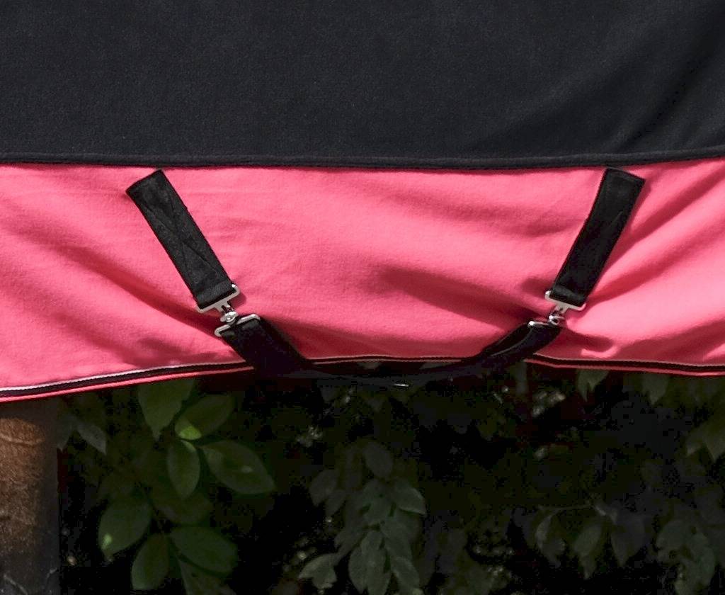 Pratique et polyvalente, à utiliser en séchante, en sous-couverture ou pour le transport. En fibres polaires 100% polyester anti-peluches, épaisseur 280 g/m². Bordure décorée d’un liseré contrasté. Equipée de sursangles croisées basses à boucles avec arrêtoirs en caoutchouc amovibles de part en part, d’un pad de garrot en mouton synthétique et d’une courroie de queue. […]