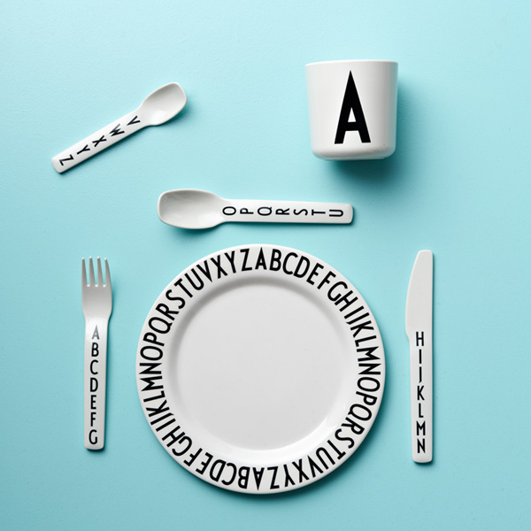 Design Letters a créé la collection Vintage ABC Kids Collection comprenant des tasses, des assiettes et des couverts en mélamine pour enfants, très tendances, décorés de jolies lettres de l’alphabet de couleur noire.