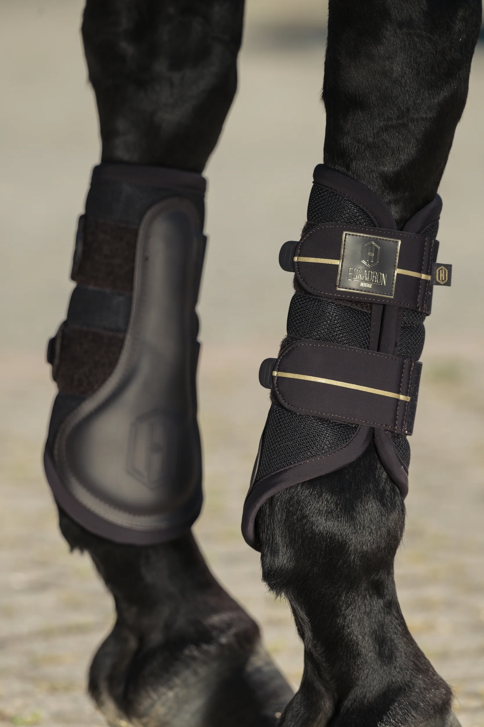 Guêtres conçues avec plusieurs couches de tissu mesh hautement respirant et un bord en pro soft pour un confort optimal lors de vos séances d’équitation. Dotées de fermetures velcro élastiques assurant un maintien ajusté et sécurisé, elles épousent parfaitement la morphologie du cheval. L’intérieur est en PU. Le logo Heritage embossé et l’étiquette signature Eskadron […]
