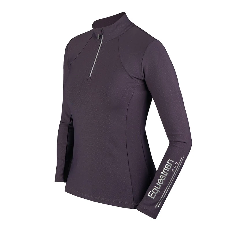 Base layer d’équitation à manches longues classique et magnifiquement conçu dans un tissu extensible confortable de haute qualité. Le matériau du top est respirant et sèche rapidement. La chemise est dotée d’une demi-fermeture éclair sur le devant et d’un petit col montant.