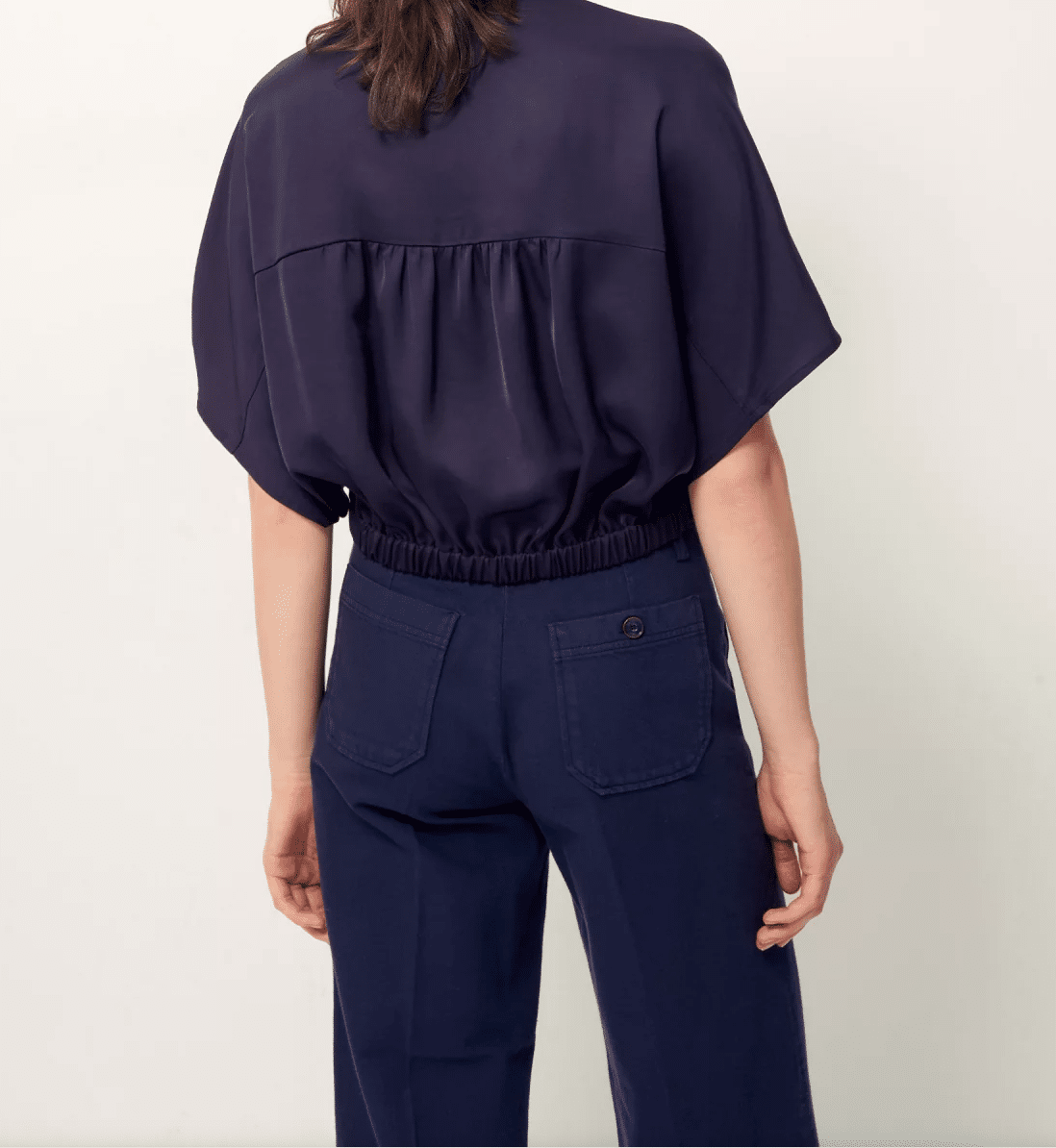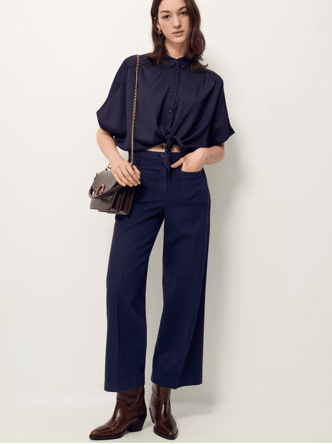 Jean Aldricks droit de chez Sessun à plis marqués en sergé souple teint en plongée tissée en Espagne.