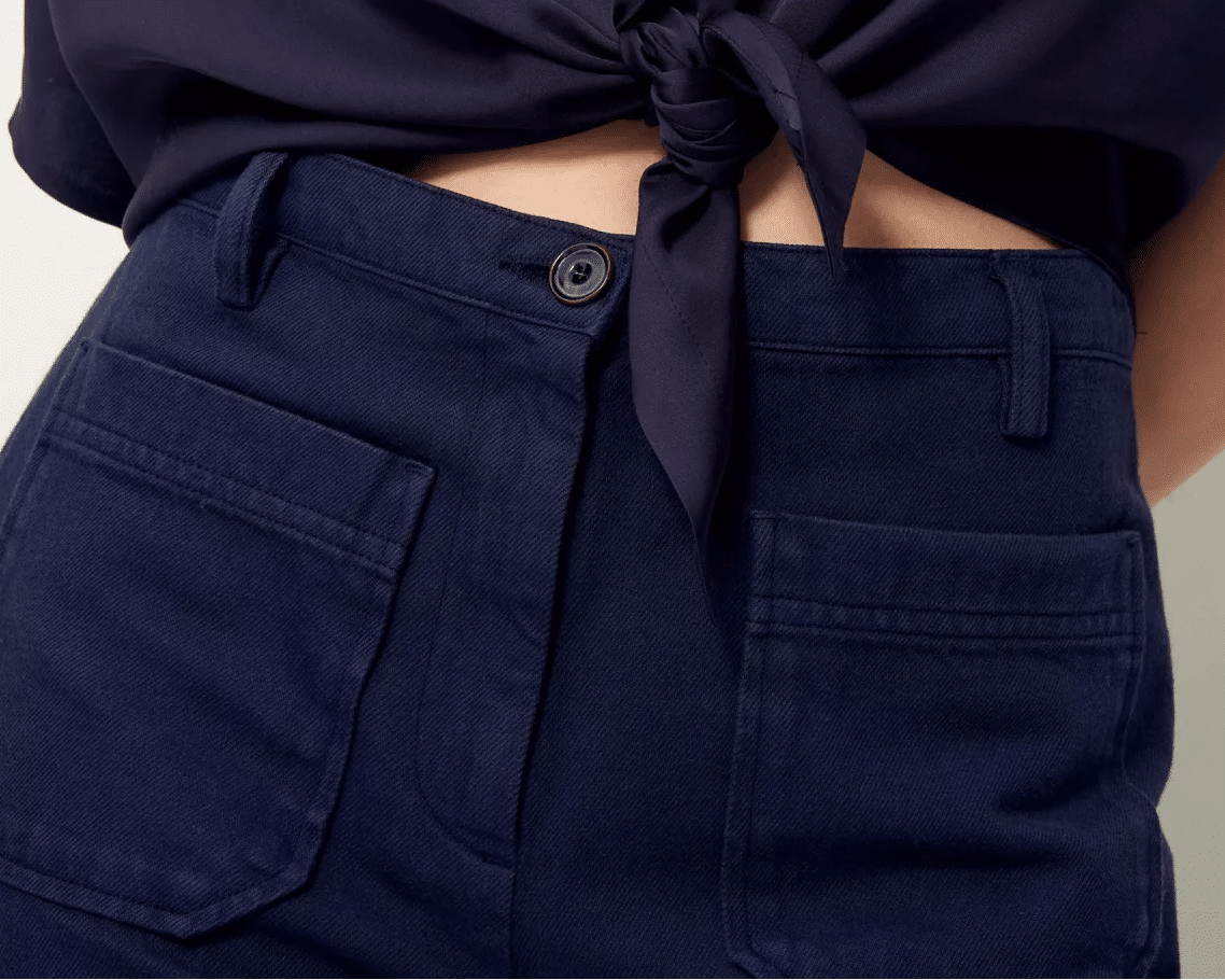 Jean Aldricks droit de chez Sessun à plis marqués en sergé souple teint en plongée tissée en Espagne. Le coton utilisé pour la confection de ce produit est un coton organique certifié GOTS provenant de l’agriculture biologique. Il est cultivé dans le respect de l’environnement et des Hommes, sans engrais ni additifs chimiques.