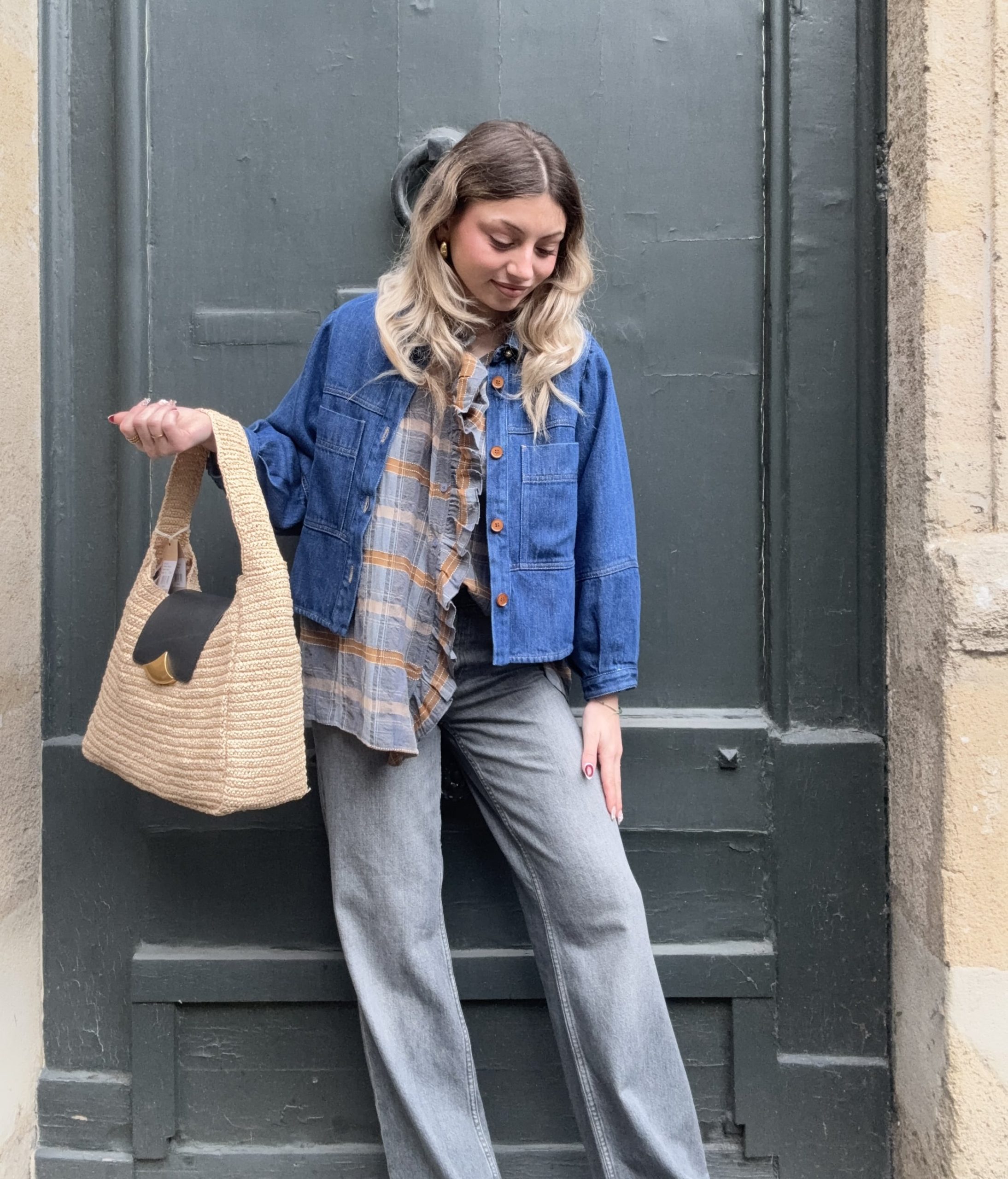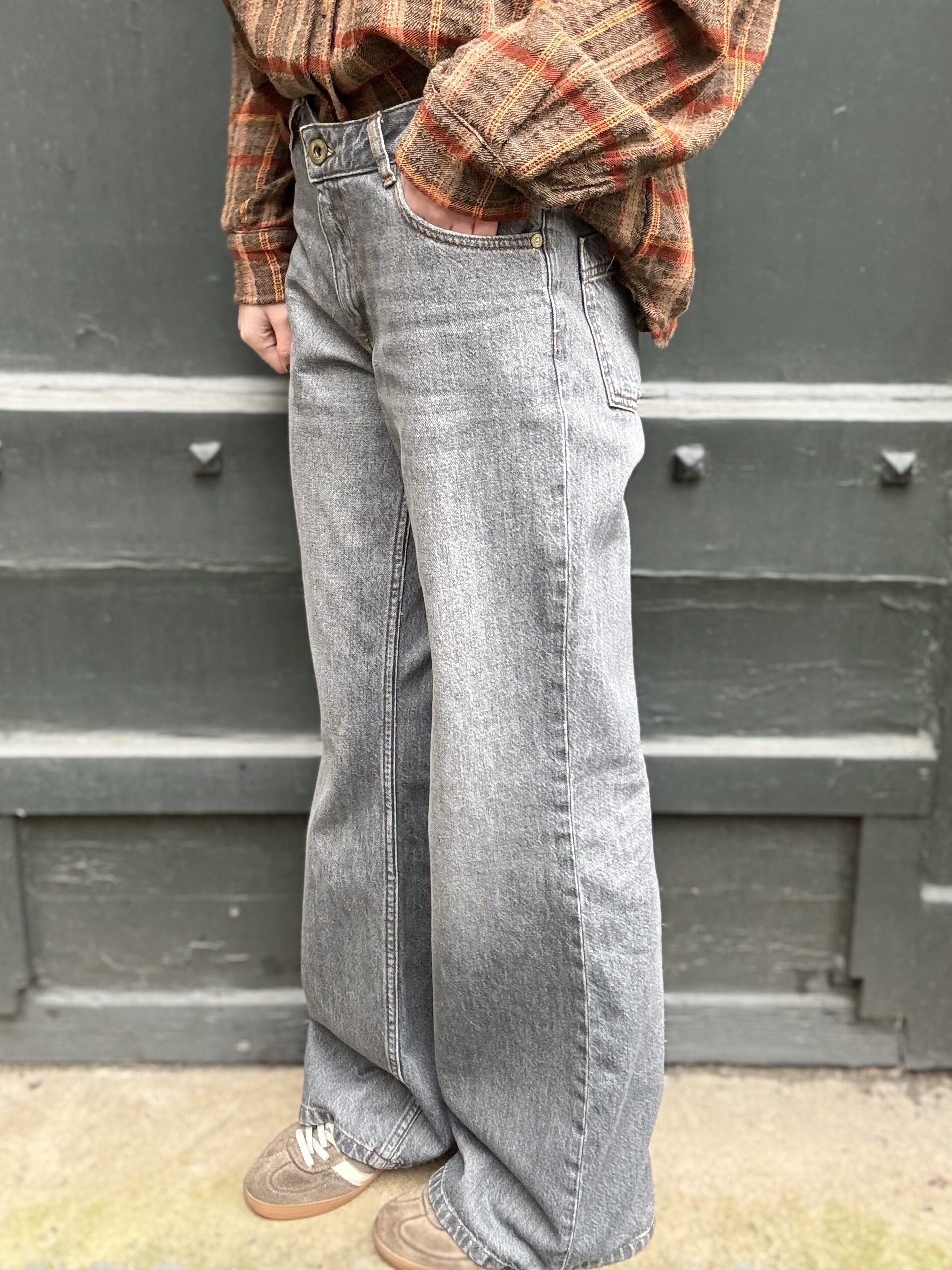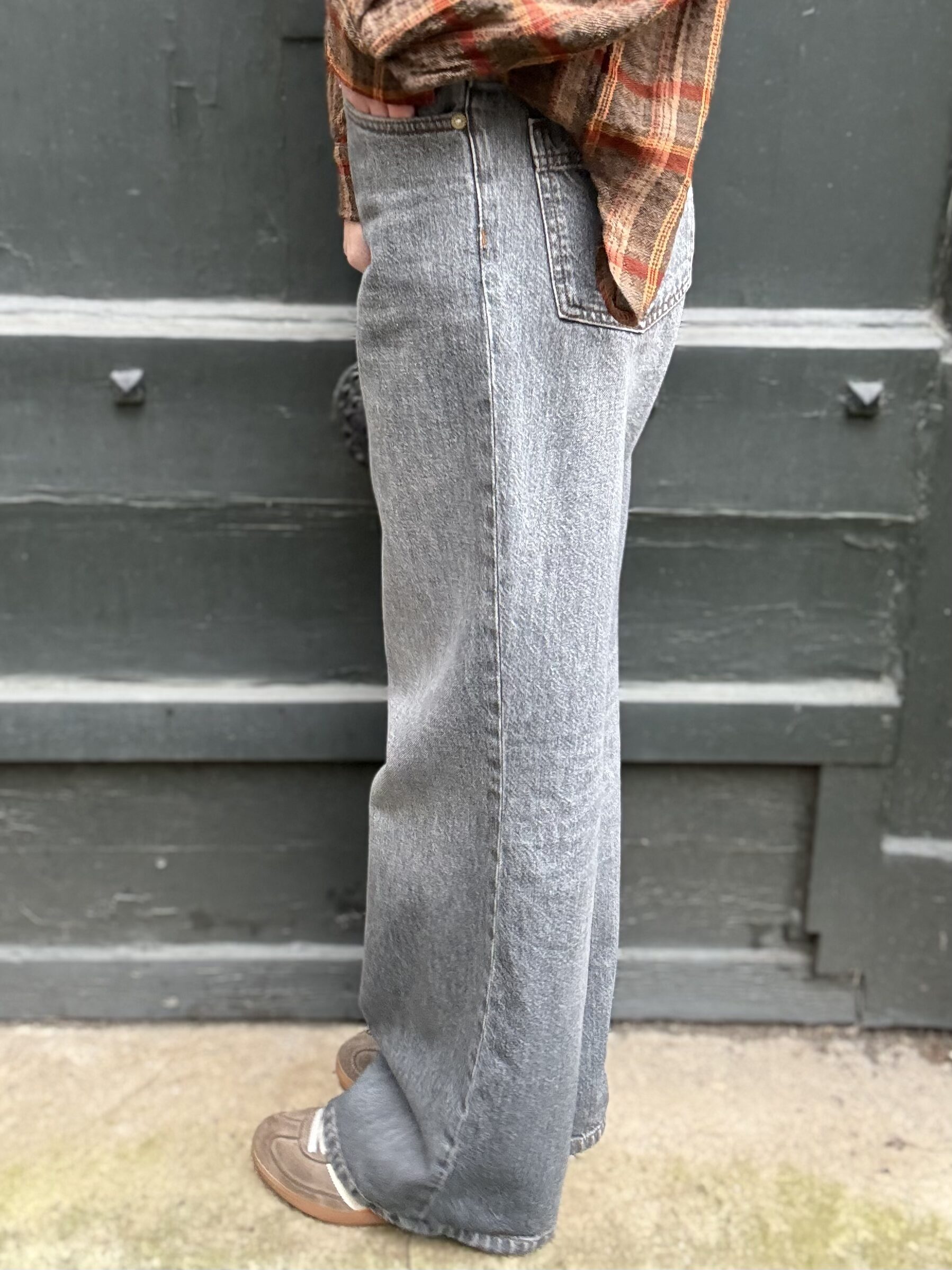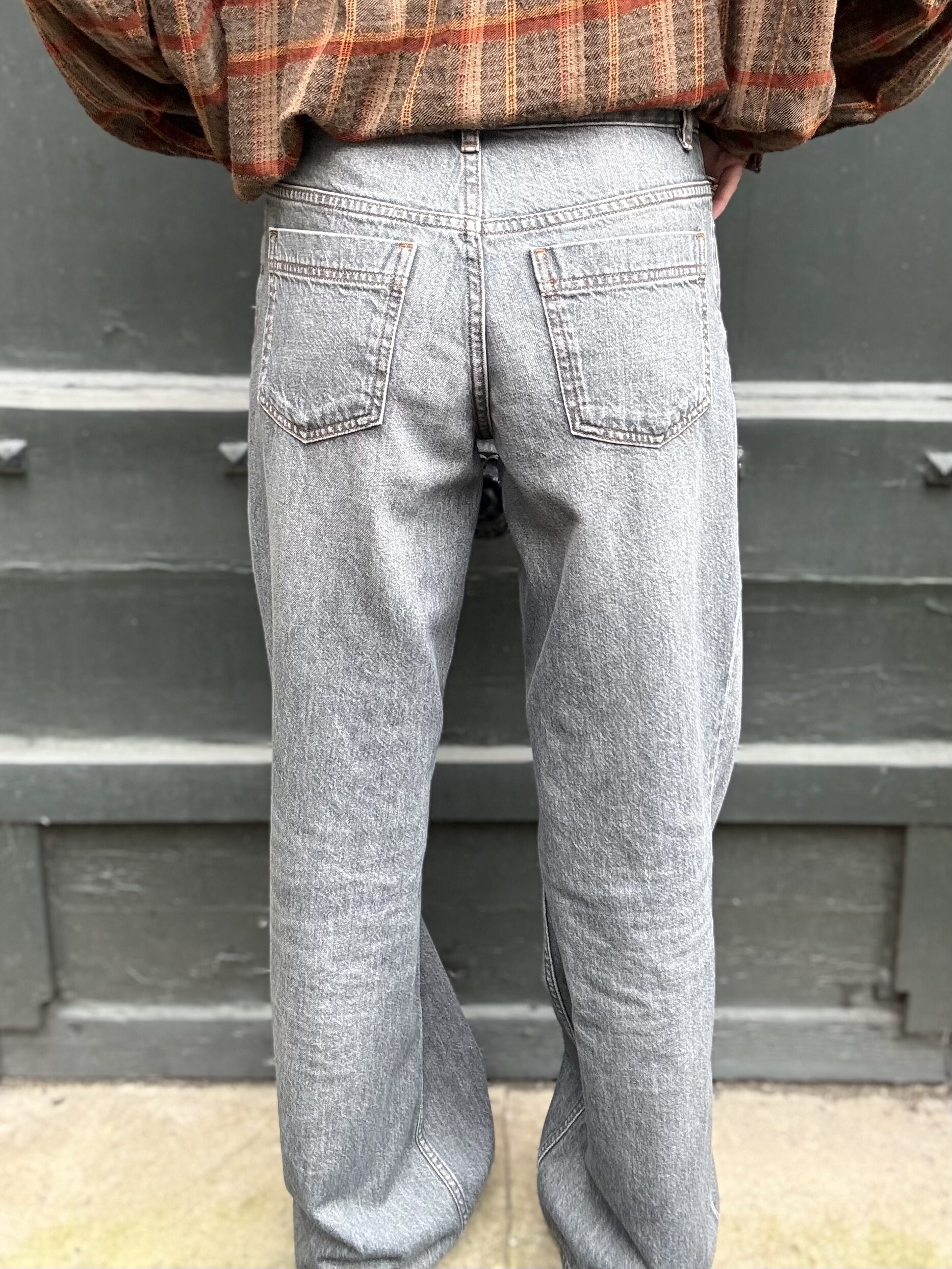 Jean droit taille basse, jambes légèrement amples, en denim stonewashé légèrement stretch.