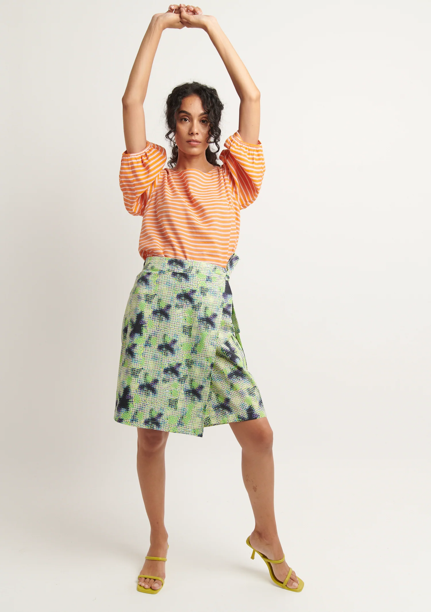 L’écru est tissé en Asie et imprimé en Bulgarie. La jupe est fabriquée en France.