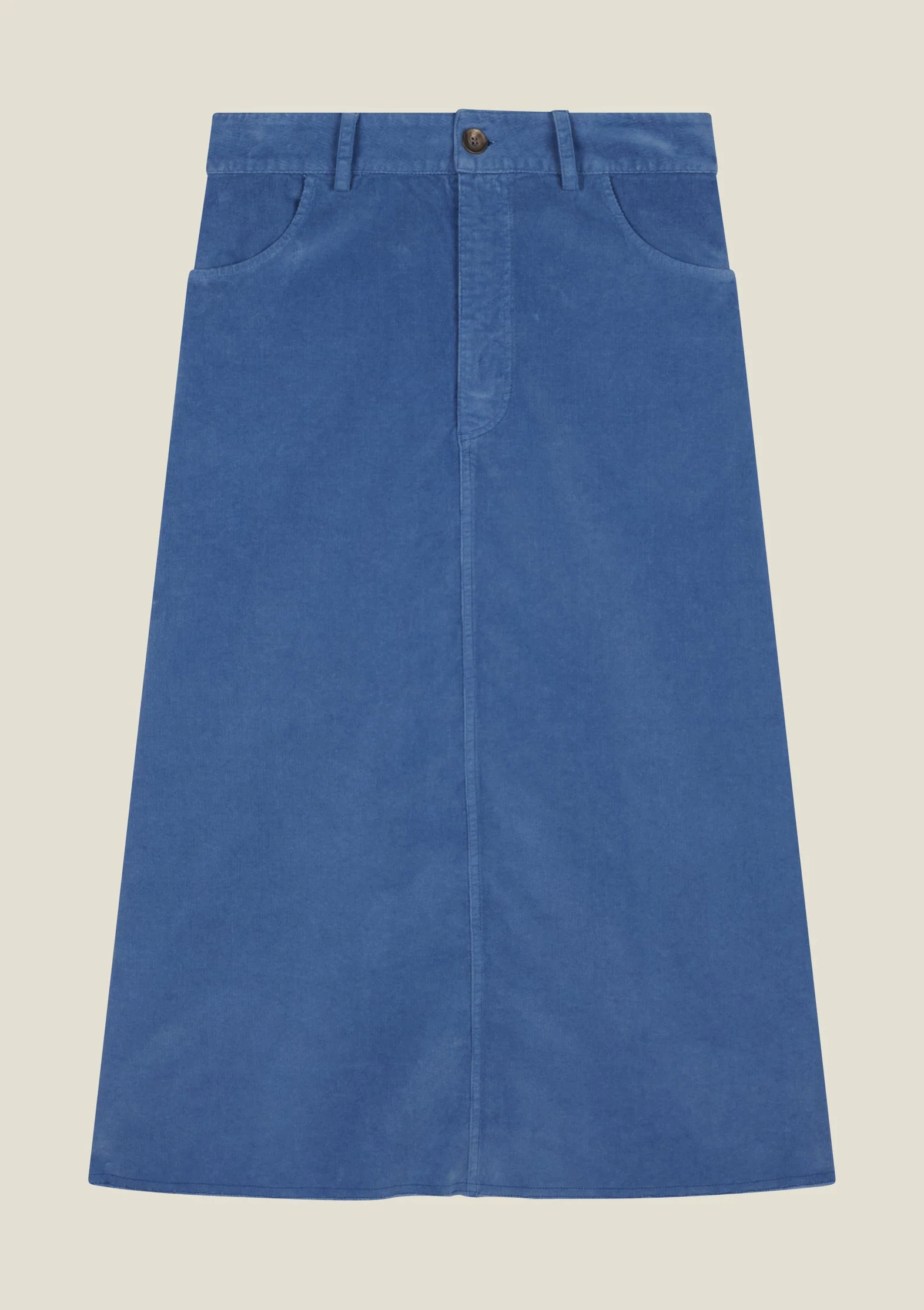 Confectionnée dans un velours mini raies presque lisse, cette jupe mi-longue séduit par son style intemporel, sa coupe féminine façon western, et son confort absolu grâce à l’ajout d’élasthanne. Un basique revisité à associer facilement avec tous les imprimés colorés Made in Sens !