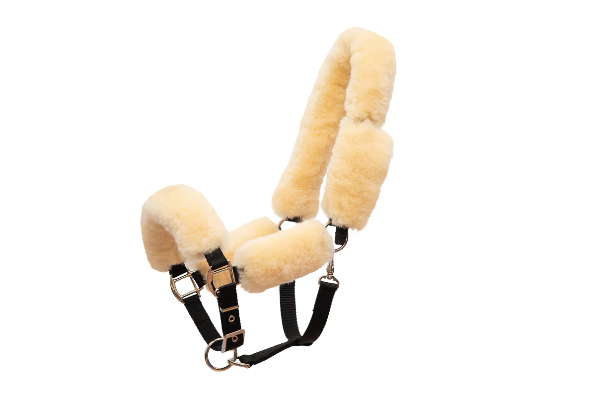 Licol noir pour l’écurie et le transport. Inclut un set de 6 protections en peau d’agneau véritable. Fermeture par velcro. Convient pour une circonférence jusqu’à 8 cm.