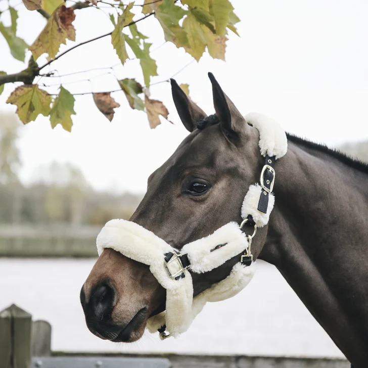 Notre très populaire Sheepskin Shipping Halter est un licol extrêmement doux et confortable. La base de celui-ci est fabriqué en nylon très solide combiné avec un mouton synthétique développé par nos soins, rendant ce licol très léger et confortable. Sa légèreté permet de réduire les pressions sur la tête du cheval et fait de ce licol le produit le plus performant du marché durant les longs transports. Cousu à même sur le nylon, le mouton synthétique recouvre chaque centimètre et boucles du licol.