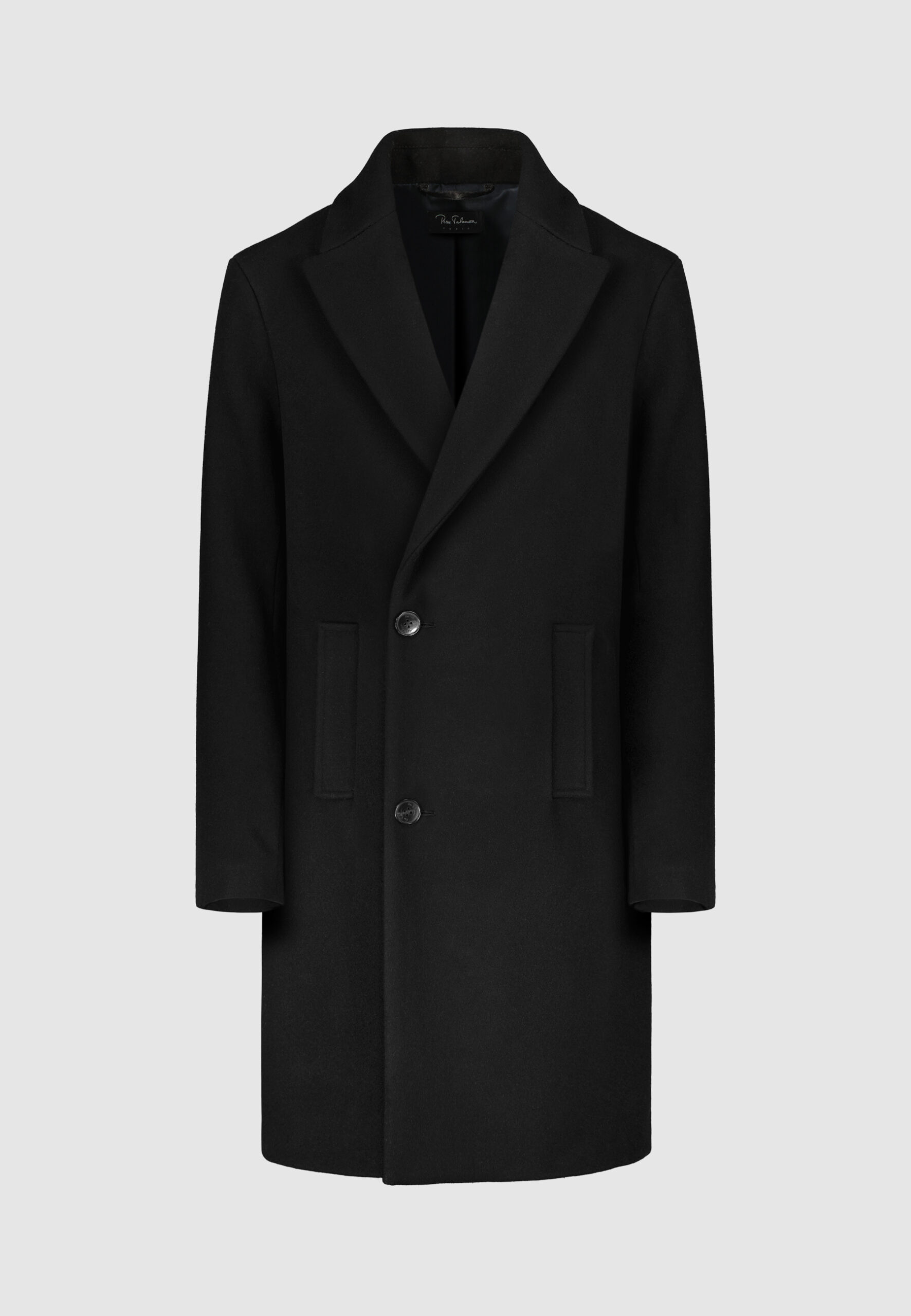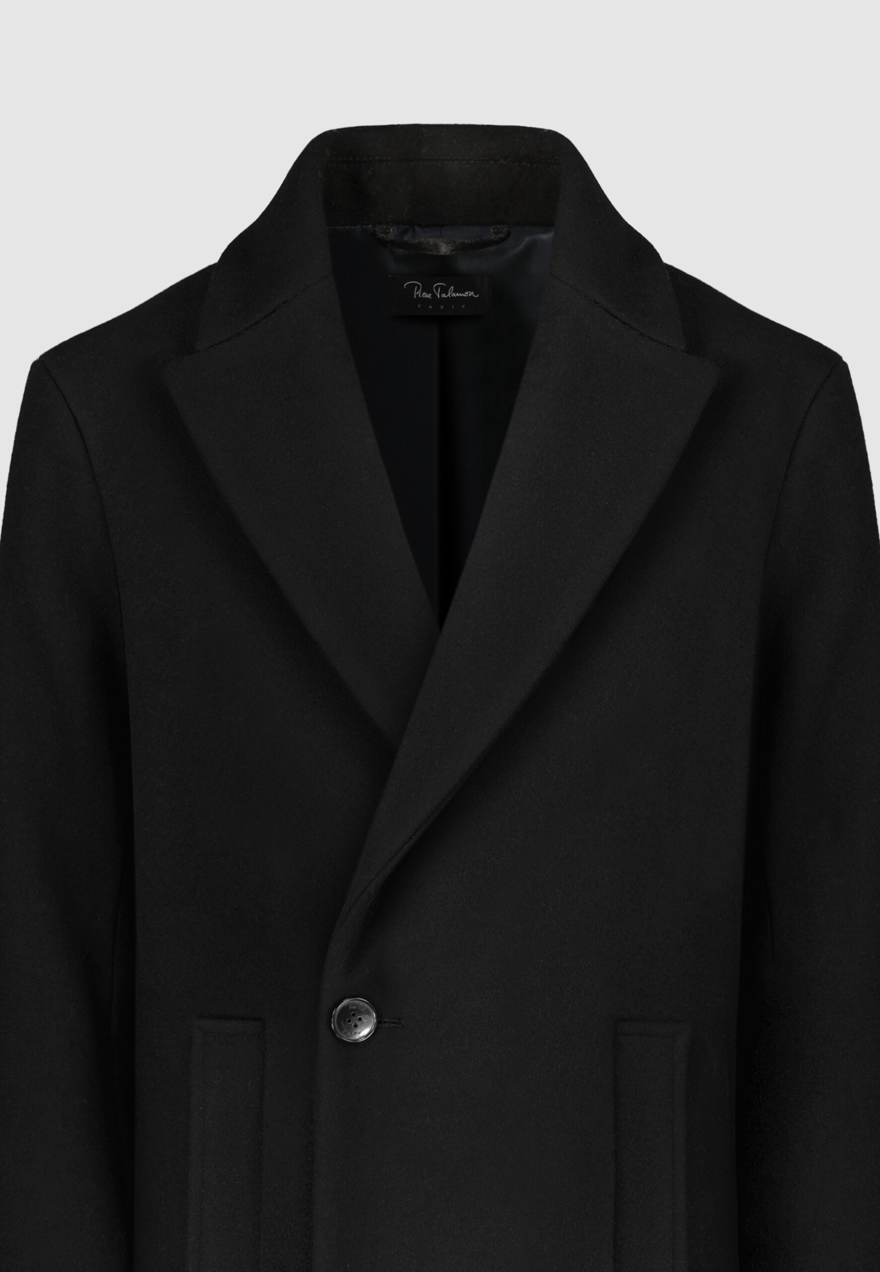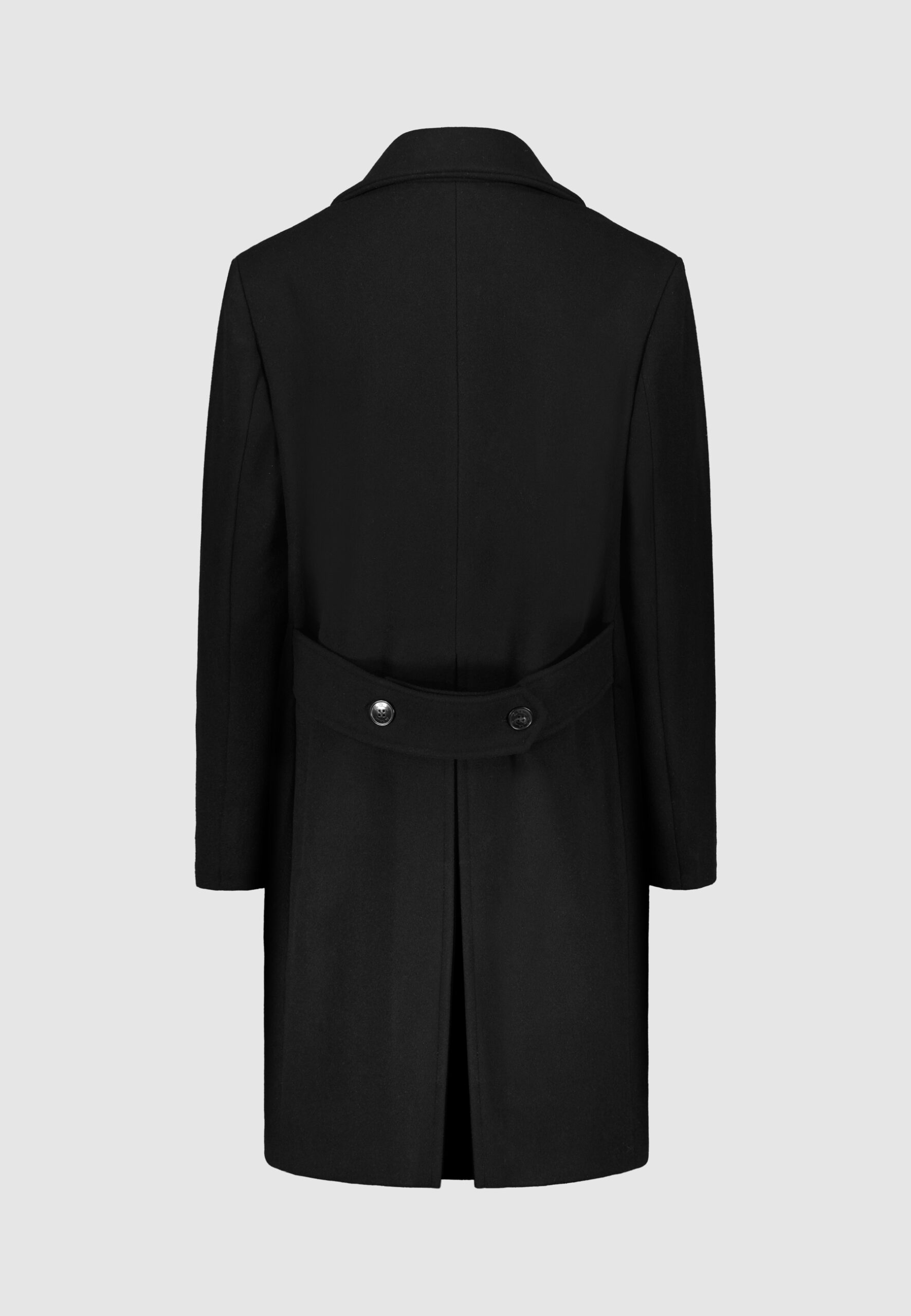 Manteau en drap de laine noir • Col cranté • Fermeture croisée à boutonnage asymétrique • Deux poches passepoilées • Deux poches intérieures • Ceinture dos • Fente dos Composition et entretien : • 100% Laine • Doublure viscose • Nettoyage à sec