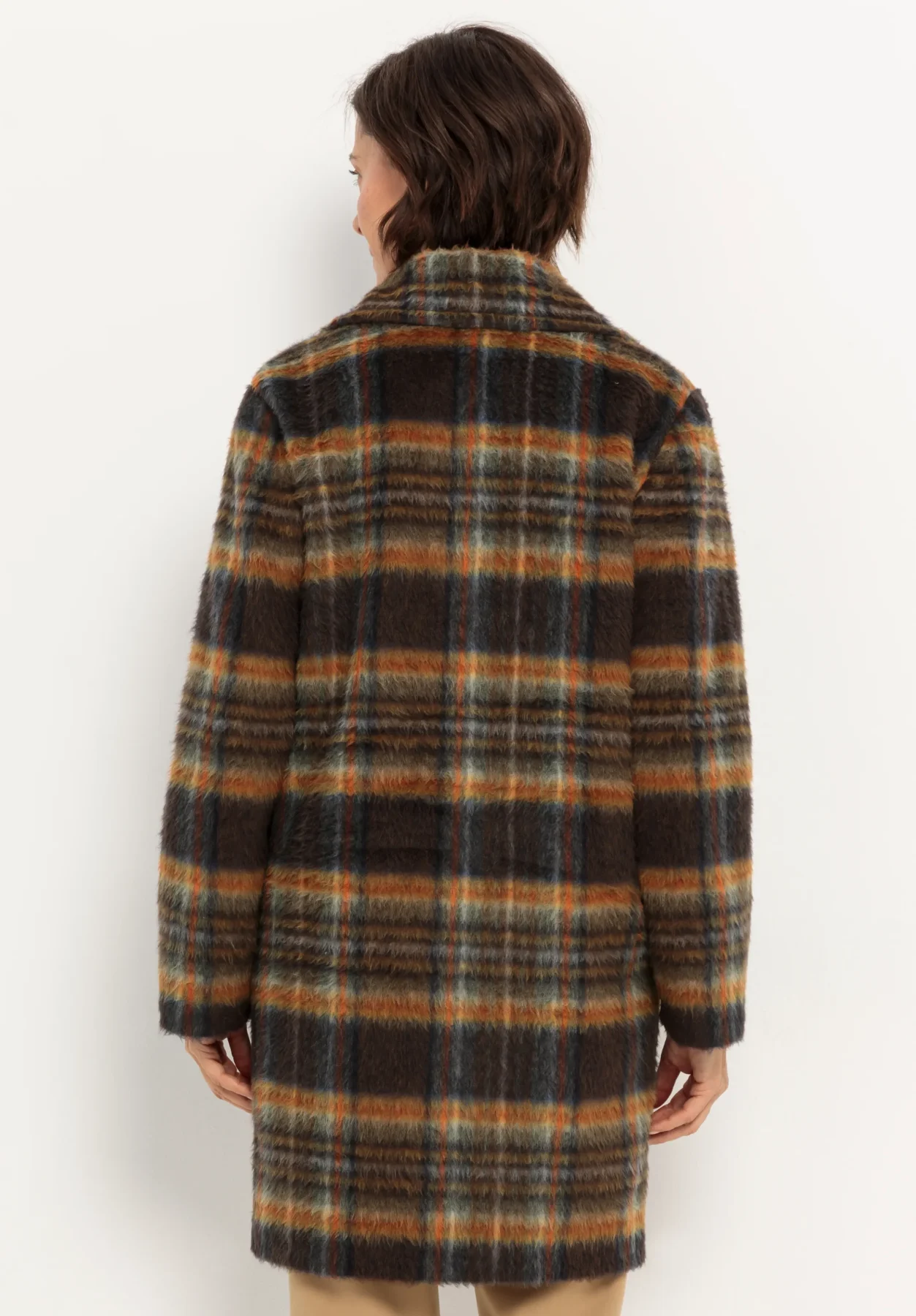 Manteau Mi-long Manches Longues Imprimé Carreaux Ecossais