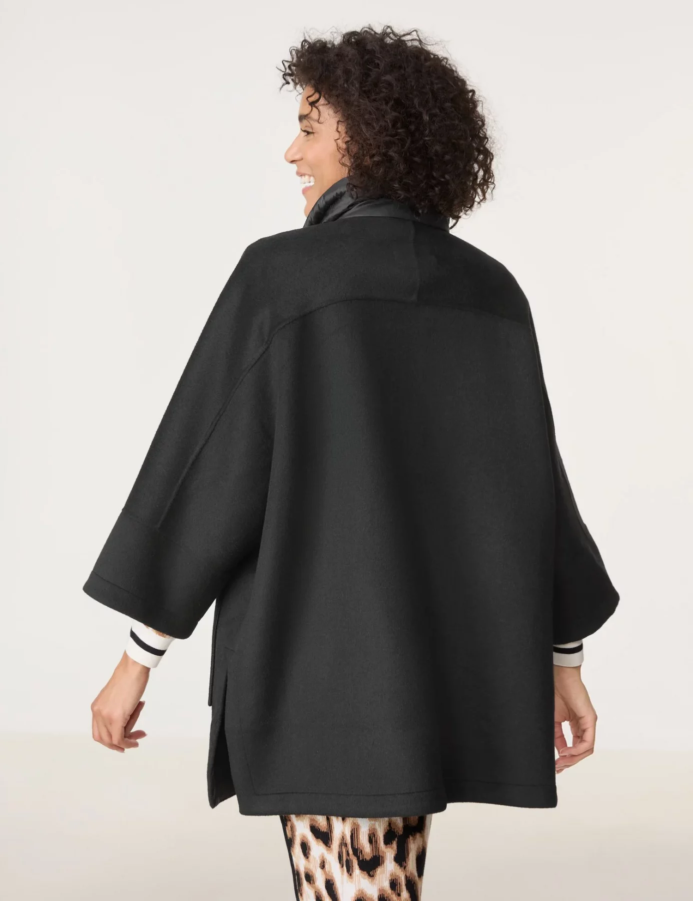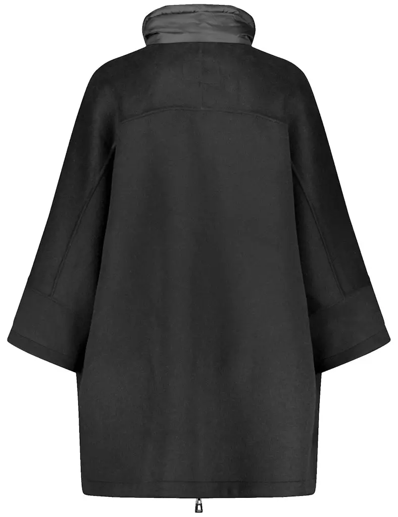Manteau Mi Long Oversized Col Montant Cordons Manches Longues Deux Poches Zippé Uni
