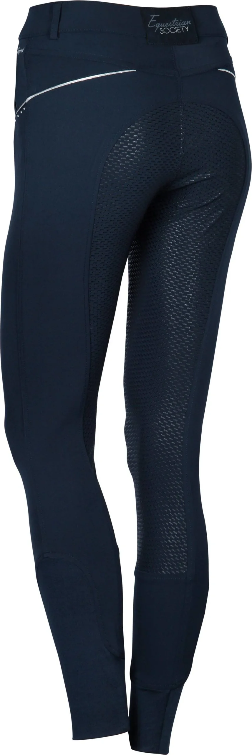 Pantalon d’équitation avec deux poches latérales, passepoil métallique à l’avant et à l’arrière, avec des cristaux et un joli badge sur la ceinture, siège à coutures rondes avec un imprimé en silicone pour une meilleure adhérence en selle et des jambes flexibles pour plus de confort dans les bottes d’équitation. 90 % polyester/10 % élasthanne.