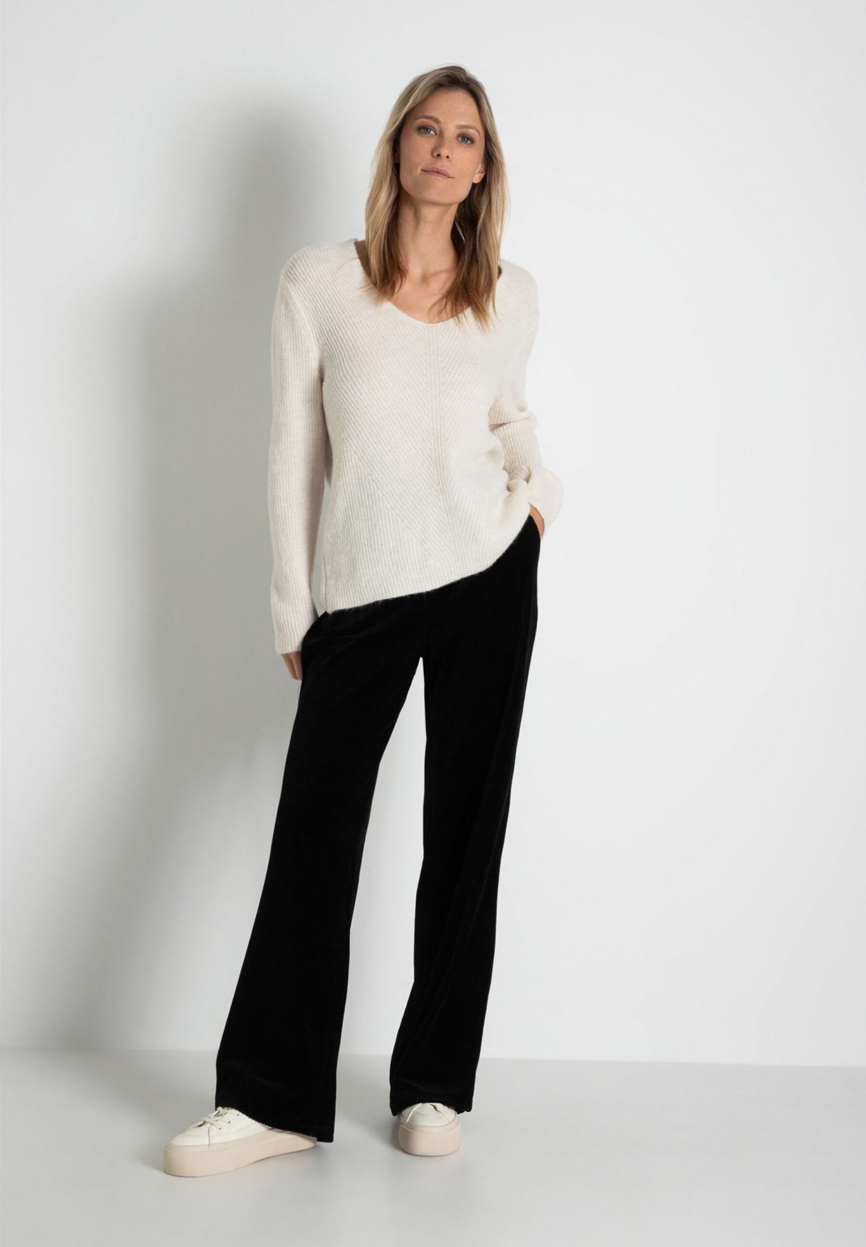 Pantalon Long Taille Moyenne élastique Velours Fluide Deux Poches Uni