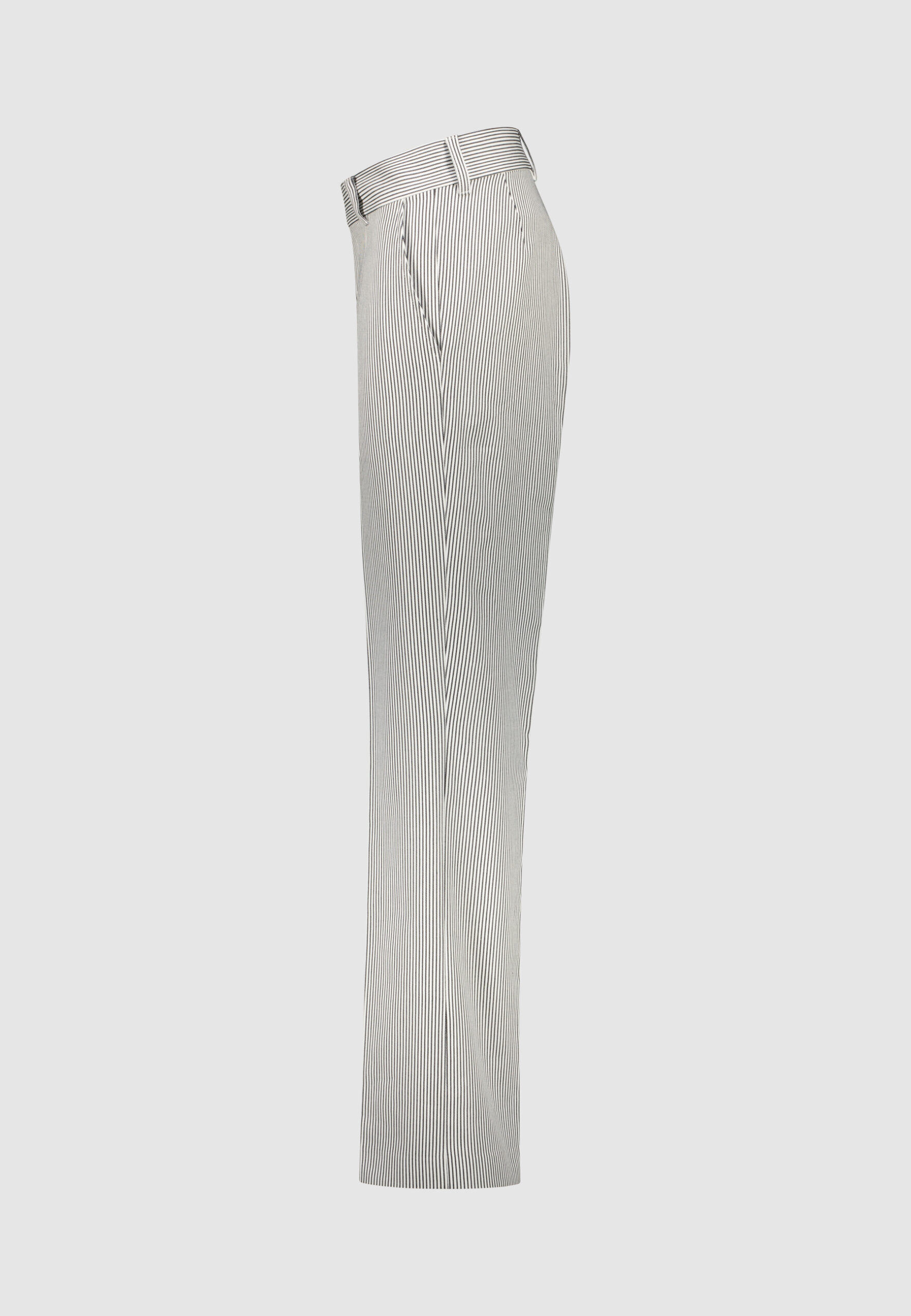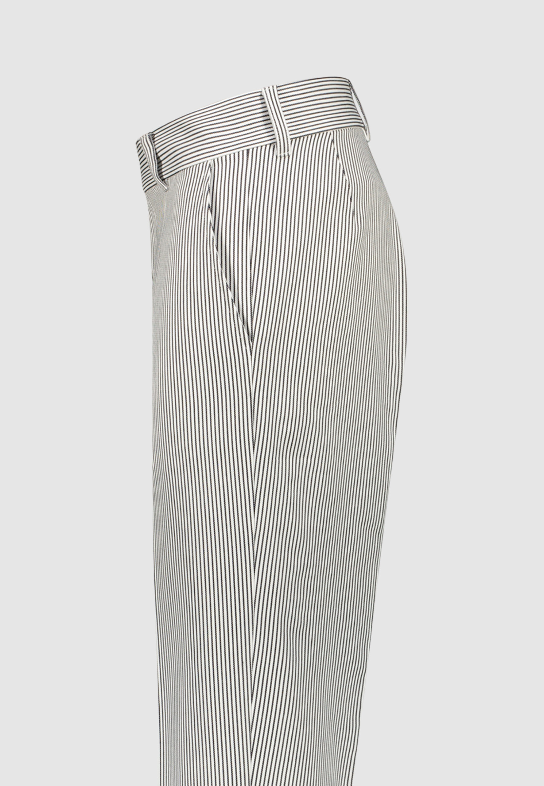 Pantalon en coton blanc à rayures bleu marine • Coupe droite • Poches italiennes • Ceinture haute à deux boutons • Poche dos passepoilée • Bas simple Composition et entretien : • 100% Coton • Lavage machine 30° Notre mannequin Edouard mesure 186 cm et porte une taille 38